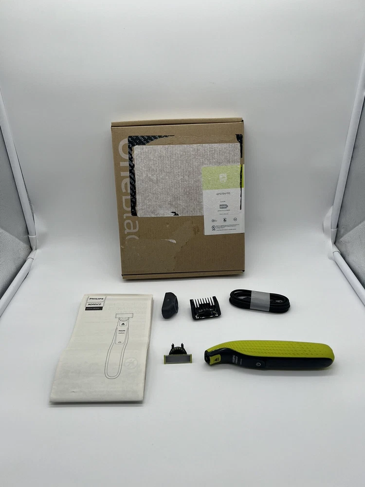 Philips Norelco OneBlade 360 Face Hybrid Electric Beard Trimmer QP2724/90 (S1(11) It’s brand new, open box. OneBlade Technology: the fast-moving cutter (12,000x min) is efficient, even on longer hairs; the dual Protection System with glide coating plus rounded tips makes shaving easier and more comfortable Innovative 360 Blade: it can flex in all directions to enable constant skin contact and control; easily trim and shave, even the most difficult-to-reach areas with fewer passes and greater comfort¹ Designed to cut hair not skin: trim your beard to an even stubble length with the 5in1 comb (1-5mm), create precise edges thanks to the dual-sided blade, and shave off any length of hair easily Easy grooming anywhere: take it in the shower and use wet or dry; 45-minute battery with USB charging and compact handle make it the perfect travel companion The set includes: 1x Philips Norelco OneBlade 360, 1x 360 Blade, 1x 5in1 adjustable comb (1-5mm), 1x protection cap, 1x USB-A charging cable, a user manual (power adapter not included)