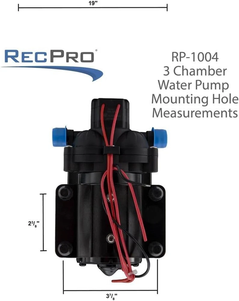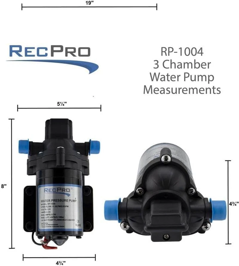 Store New Arrivals Add to Favorite View Feedback Contact Recpro RV Water Pump Direct Replacement for Shurflo 4008-101-A65 3.0 GPM | 12V Water Pump | Self-Prime | Camper Water Pump | RV Plumbing Description Item model number 10 Part Number 4008-101-A65 Batteries Required? No Maximum Lifting Height 9 Feet Power Source Battery Powered Item Package Quantity 10 Color Silver Product Dimensions 4.9"L x 4.3"W x 8.1"H Material Polypropylene Item Weight 4.54 g Maximum Flow Rate 3 Gallons Per Minute Batteries Included? No Voltage 12 Volts (DC) Manufacturer RecPro Size 1 Pump Created with a unique one-piece diaphragm and internal by-pass, this pump is durable and reliable for all plumbing systems. Designed as the next legendary pump to exceed the expectations of our customers, the Revolution Pump is constructed for high flow demand, low noise, and no rapid cycling. The 4008 Revolution fresh water automatic demand pump is super quiet, thermally protected, and can run dry without damage. With this quality assurance, you can relax in your RV without needing to worry about your water pump. With the built-in check valve, backflow is prevented so that you can make sure you’re getting all of the water you want to the fixture you’re using. While the pump runs at about 55 PSI, the pressure at which the pump will shut off is 45 PSI. Please Note: E65 and A65 is the Same Pump. Pump Listed Does NOT Come in Retail Package Product Description Technical Data: Voltage: 12V DC GPM/LPM: 3.0/11.6 PSI/BAR: 45/3.1 Amps: 4.0 Max draw: 8.0 Amp Max Lift: 45 PSI/3.18 Bar RecPro 12V Electric 3 Chamber RV Water Pump The RecPro 12V Electric 3 Chamber RV Water Pump is the perfect solution for all of your RV water needs! This pump features corrosion-resistant valves, which keep it running smoothly and quietly, perfect for camping in a packed campground. With its self-priming feature, you can rest assured that the pump will keep up and running without requiring extra steps or care from you. Pick up this 12V RV Water Pump for a reliable and quiet water pump perfect for any camping trip! Dimensions: 8"L x 5 1/4"W x 4 3/4"H Corrosion-resistant valves Quiet running Smooth operation Self-priming up to 9.0ft vertical Runs dry without damage Lower power draw Easy connecting system ABOUT US We offer the best prices around on high quality products. Our E-store includes media such as books, movies, music and games while offering electronics, toys, sporting apparel, clothing, tools, general home, garden items and more. SHIPPING We are always working hard to ensure your package arrives as soon as possible. Please understand that some factors like weather, high postal traffic, and the performance of shipping companies are outside of our control. For shipping outside of the continental USA, we only use eBay's Global Shipping Program.The item is shipped to KY and then sent to the rest of the world. International customers are responsible for all duties and taxes. Continue to check out in order to calculate costs for shipping the item to your country. Messages regarding eBay's Global Shipping Program MUST be directed at eBay EXCLUSIVELY. RETURNS We offer a 30-Day Return Policy on items which you are not completely satisfied with. You have the option for a full-refund or an exchange of the item. No returns are available on items shipped outside of the USA. PAYMENT We accept PayPal. CONTACT US This page content is yet to come Please ad us to your favorite seller and visit again later Thank You CUSTOMER SATISFACTION We try our very best to make sure every customer is completely satisfied. If there's a problem, message us! We're happy to help. WE ACCEPT Copyright © 2021 AutoDS. | All Rights Reserved