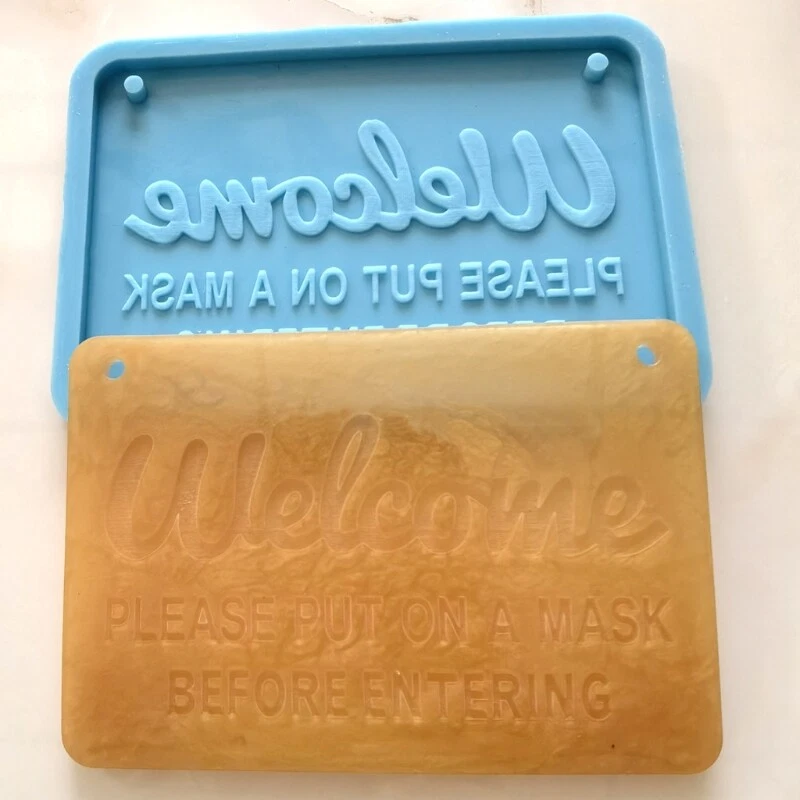 Rectangle Doorplate Resin Mold for DIY Door Wall Hanging Plates, Welcome Sign Handmade Welcome-Door Plate Resin Mold Silicone Letter Sign Please Wear a Before Entering Resin Mold Craft Tools Feature: If you are fond of DIY this silicone mold may be great for you. You can make your own door plate with this mold. silicone,it will greatly make products. Non-stick,easy to separate, eco-friendly,low carbon, can be recycled Simple and useful, Healthfulness,natural antibackerial, High strength softness,corrosion and Adaptability Specification: Silicone Color:Blue Size More detailed,please see phoyo Quantity:1 Pc. Notes: Due to the light and screen setting difference, the item's color may be slightly different from the pictures. Please allow slight dimension difference due to different manual measurement. Package Included: 1x Silicone Mold.