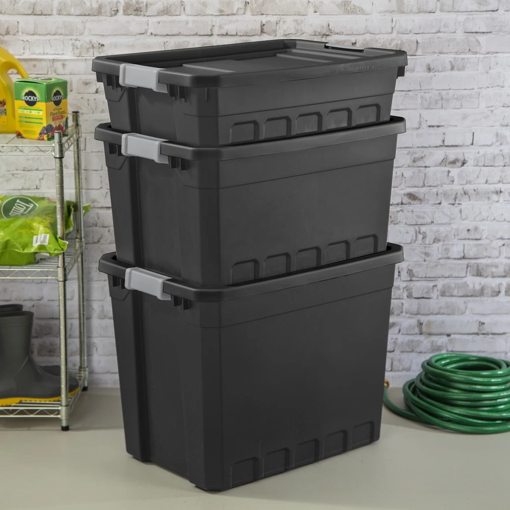 $ 27.5327 Gallon Stackable Snap Lid Plastic Storage Bin Container Black/Red Lid Set 4