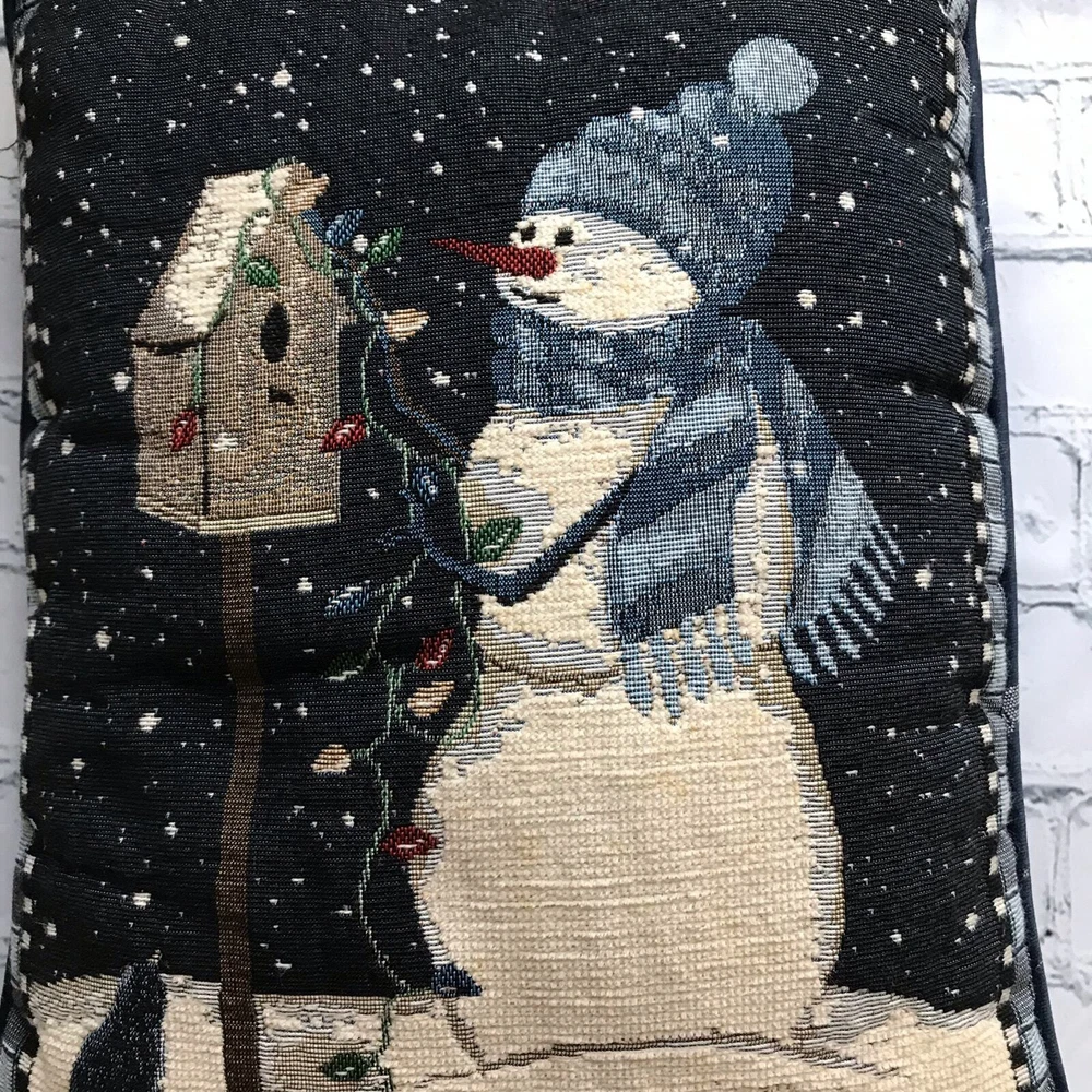 Rectangular Snowman Decorative Pillow Cathy Sampson - snowman, good condition, holiday, christmas, winter- decorative pillow. Preloved Color: Blue/White *Approx measurements(flat lay)-Length 16" Width 12" See pictures for more details. If you have any questions, please ask before you purchase. *QUICK SHIPPER* ***BUNDLE FOR A BETTER DEAL***