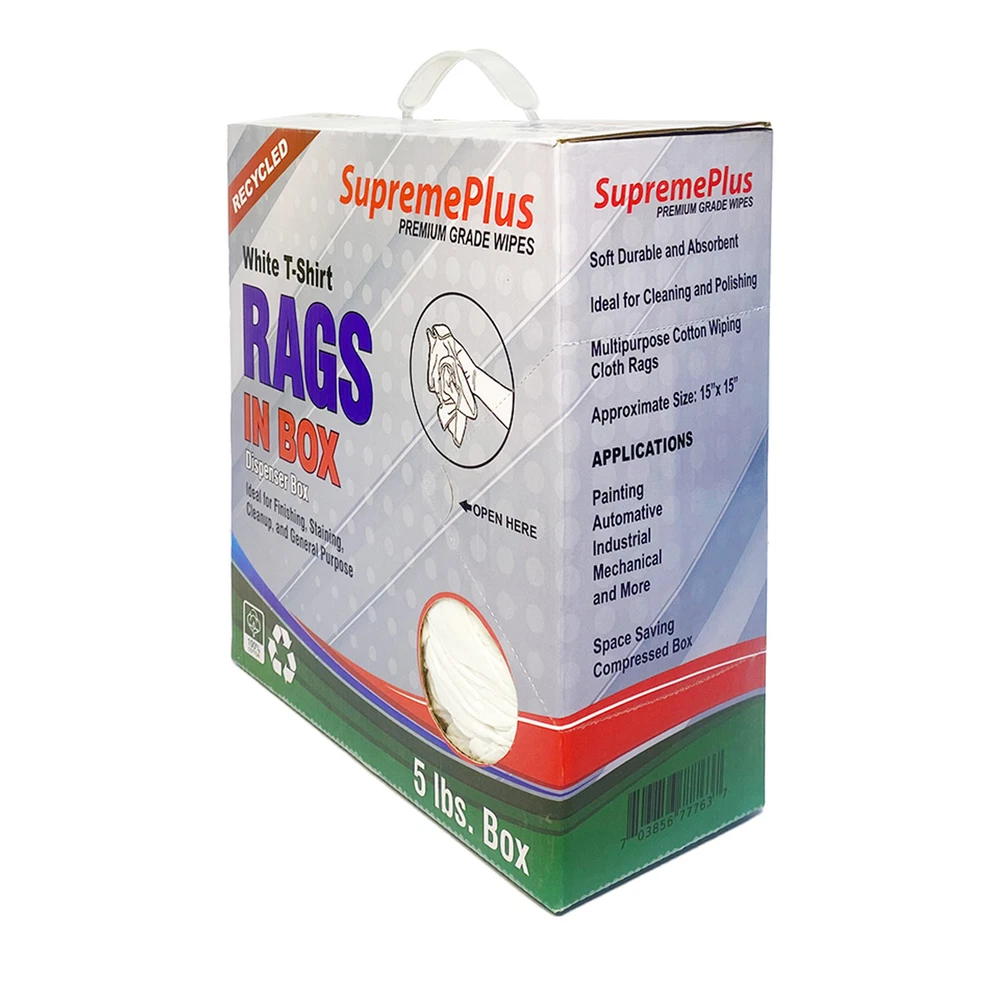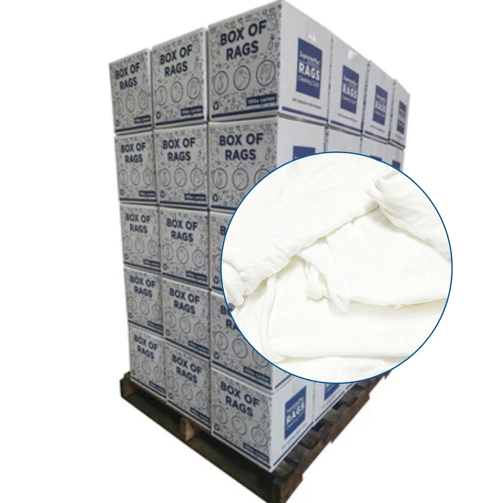 Product Description Recycled White Knit T-Shirt Cotton Cleaning Rags - Multipurpose Cleaning Cloths If you're looking for reliable cleaning cloths : Our premium white knit cotton rags are perfect for household and workplace use. These versatile cloths can handle a range of tasks, from cleaning spills to maintaining cars and kitchen countertops. Low-Lint Finish for Residue-Free Surfaces: Crafted from a high-quality knit material, our rags are designed to be gentle on surfaces while also being highly absorbent. With a low-lint finish, they won't leave any residue behind Eco-Friendly Choice for Environmentally Responsible Cleaning: In addition to their effectiveness, our new white knit cleaning cloths are also eco-friendly. Made from 100% cotton blend leftover materials, they're the perfect choice for those who prioritize environmental responsibility Perfect for Industrial Factories and Workshops : These multi-purpose white knit rags are ideal for use in workshops, as they're up to the challenge of tackling tough grease, oil, and dirt. They'll help keep your workstation clean and efficient. Polished and neat Finished: This pure white color ensures that you won't have to worry about any color bleeding or staining. Choose our white cotton rags for a polished, neat finish every time. In a world where cleanliness was a top priority, a remarkable innovation was born: the extraordinary white knit rag. These weren't your ordinary cleaning cloths; they were something truly special. Crafted from a unique blend of 100% cotton, they boasted exceptional softness and an unparalleled ability to soak up messes, making them the unsung heroes of the cleanliness realm. Approximately cut 18 by 18 inches, these versatile rags were always prepared to tackle any mess, no matter how challenging. They possessed a near-magical quality, effortlessly handling even the messiest situations by absorbing liquids with ease and leaving surfaces impeccably clean and dry. With these remarkable rags in hand, the burden of cleaning was transformed from a dreaded task into an enjoyable breeze. These multi-purpose white knit rags were more than just cleaning cloths. They were symbols of excellence in keeping things clean. They were soft, great at soaking up messes, and made everything look shiny and bright. But there was something more to them. They were also good for the environment. They were made from new materials, which was a way of being kind to the Earth. These rags didn't just clean well; they helped reduce the impact we have on our planet For pallets, please ensure you have a loading dock and a lift gate at your facility to ensure safe and efficient pallet handling Industrial Usage: Industrial cleaning rags find widespread utility across sectors, from manufacturing floors, general shops, factory, machinery wipes to automotive workshops, effectively tackling grime and grease for a pristine workspace. Their versatility and cost-effectiveness make them an indispensable tool for maintaining high cleanliness standards in diverse industrial environments. Soft and Smooth Welcome to the world of Soft and Smooth – where comfort becomes an art form. Embrace a tactile sensation that transcends mere touch. Our collection is a symphony of luxurious textures, each piece crafted with meticulous dedication to bringing you a tactile experience that redefines relaxation. Elevate your senses with Soft and Smooth – because every moment deserves a soft touch. Machine Washable and Dryable Cleaning has never been easier. When you finish cleaning up the mess, just put these rags in the washing machine. They're made to handle lots of washes and still stay in great shape. they're super-efficient and really tough. Say goodbye to the hassle of cleaning and save your precious time with our machine-washable and Dryable Cleaning Rags. Highly Absorbent Meet our Highly Absorbent Cleaning Rags – they're like your special tool for handling spills and messes. These rags are amazing at soaking up liquids and making things super clean. Whether it's a small everyday spill or a surprise mess, these rags will make cleaning much easier. Upgrade your cleaning game with rags that are better than the rest – they're highly absorbent, and messes don't stand a chance. Shop Towel - Red Color Fleece 25 lbs. Box White Knit 10 lbs. Bag Color Terry Towel 5 lbs. Color Knit 600 lbs. Pallet Cotton Fabric ✔ ✔ ✔ ✔ ✔ High Absorbency ✔ ✔ ✔ ✔ ✔ Washable ✔ ✔ ✔ ✔ ✔ Ultra Soft ✔ ✔ ✔ ✔ ✔ Premium Quality ✔ ✔ ✔ ✔ ✔ Color Multi-Colored Multi-Colored Multi-Colored Multi-Colored Multi-Colored Size Per Piece 18 x 18 inches 18 x 18 inches 18 x 18 inches 18 x 18 inches 18 x 18 inches Premium White Knit T-Shirt 100% Cotton Cleaning Rags - MultiPurpose - NEW Product Description White Knit T-Shirt 100% Cotton Cleaning Rags - MultiPurpose Cleaning If you're looking for reliable cleaning cloths : Our premium white knit cotton rags are perfect for household and workplace use. These versatile cloths can handle a range of tasks, from cleaning spills to maintaining cars and kitchen countertops. Low-Lint Finish for Residue-Free Surfaces: Crafted from a high-quality knit material, our rags are designed to be gentle on surfaces while also being highly absorbent. With a low-lint finish, they won't leave any residue behind Eco-Friendly Choice for Environmentally Responsible Cleaning: In addition to their effectiveness, our new white knit cleaning cloths are also eco-friendly. Made from 100% cotton blend leftover materials, they're the perfect choice for those who prioritize environmental responsibility Perfect for Industrial Factories and Workshops : These multi-purpose white knit rags are ideal for use in workshops, as they're up to the challenge of tackling tough grease, oil, and dirt. They'll help keep your workstation clean and efficient. Polished and neat Finished: This pure white color ensures that you won't have to worry about any color blee