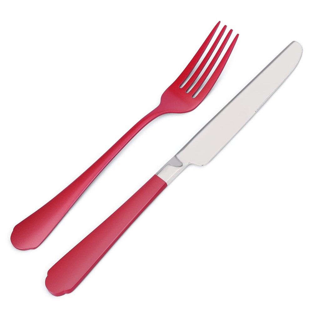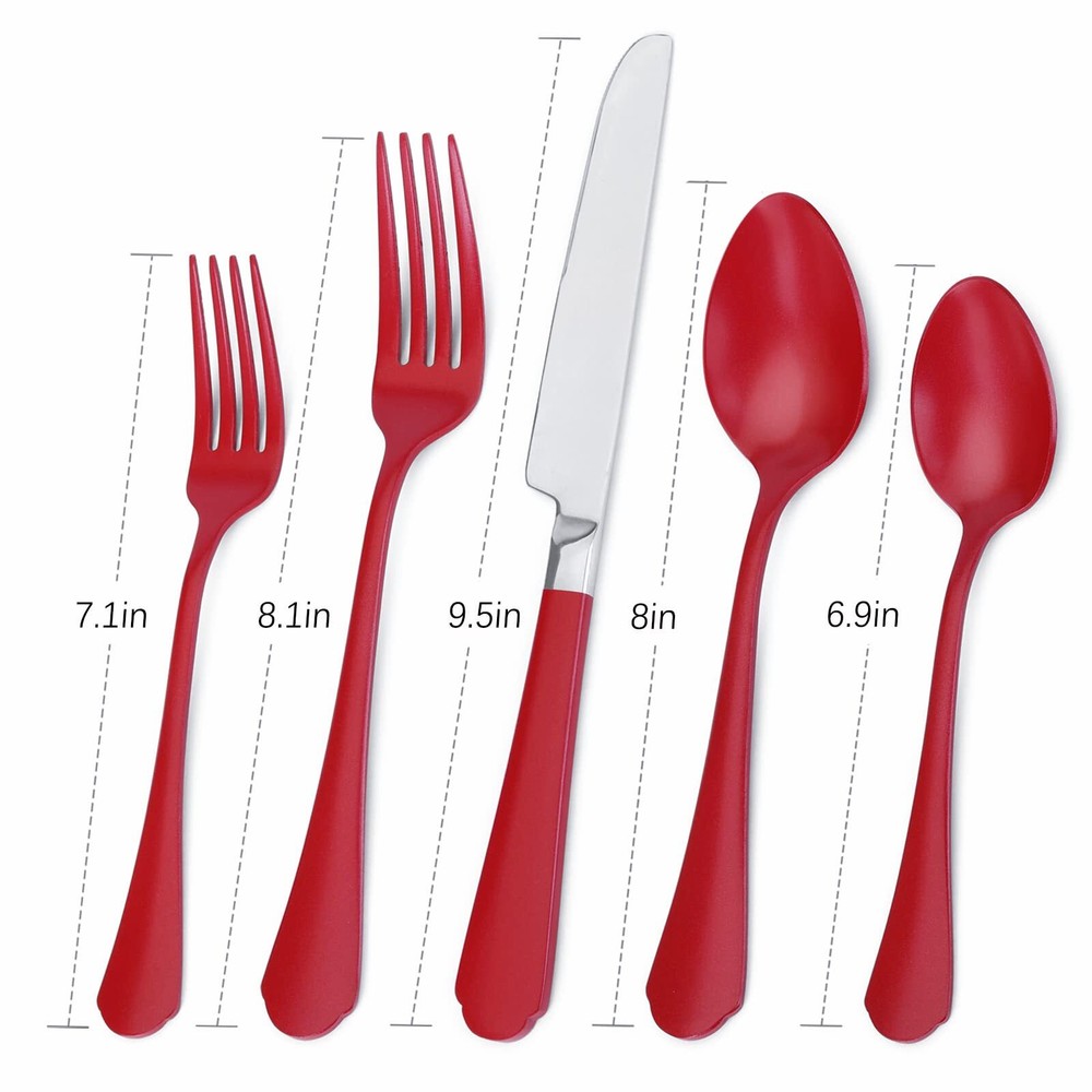 Red 20-Piece Stainless Steel Flatware Set for Modern Kitchens