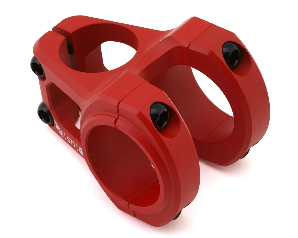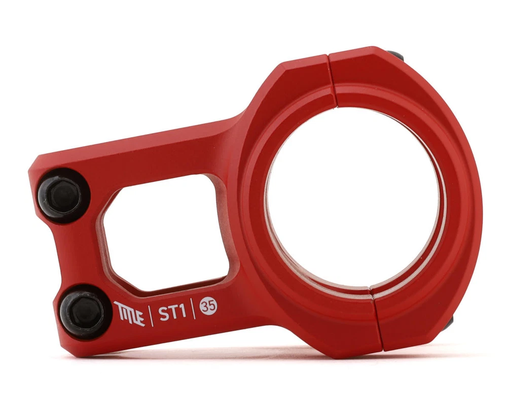 Title MTB ST1 35mm Stem Description: The Title MTB ST1 Stem is a zero rise stem machined from 6061 T6 aluminum, making it light yet strong enough for everything from dirt jump riding as well as freeride and downhill mountain bike riding. Features: Rigorously tested by EFBE. Passed TRI-TEST® GR. Certified for freeride and downhill mountain bikes Machined from solid 6061 T6 aluminum Smooth matte black finish 35mm bar clamp diameter Specifications: Bar Diameter: 35mm Steerer Diameter: 1-1/8" (28.6mm) Length/Reach: 35mm, 40mm Stem Angle: 0° Stack Height: 38mm Material: 6061 T6 Aluminum Color: Red Weight: 177g (35mm), 197g (40mm) About Us | View Store