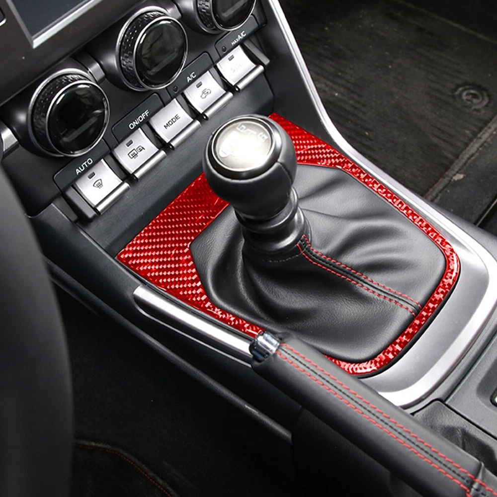 Red Carbon Fiber Center Console Gear Shift Panel Cover For Subaru BRZ GR86 22-24