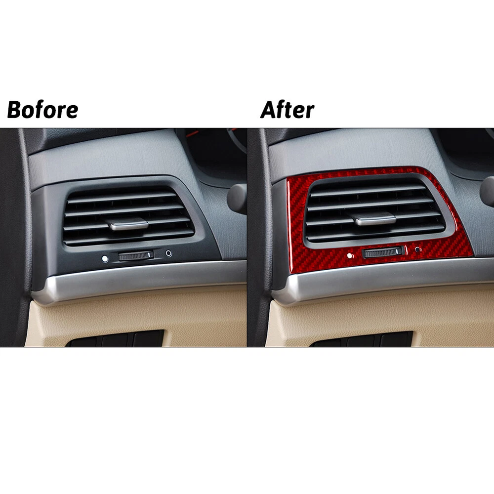 Red Carbon Fiber Side Air Vent Outlet Trim Cover For Honda Accord Sedan 2008-12 Product Description: Condition: 100% Brand New with High Quality Color:Red Material: Carbon Fiber Warranty: 12 Months Placement on Vehicle:Front,Left and Right Feature: Easy Installtion,tape is at the Back. Application: For Honda Accord Sedan / Coupe 2008-2012 For Honda Accord Crosstour 2010-2012 Package Content: Just as photo shows Method of Installation: Step 1 Confirm the installation area, then clean the dust out with a dry cleaning cloth. Step 2 Tear off the back of tape and paste the adhesive cover. Step 3 Please avoid washing your car or touching the water after the paste within 24 hours. Note: It may be some hard due to the low temperature,please heating the sticky side with your hair blower,thanks. Payment Warranty & Return Policy Shipment Contact us Feedback & Customer Service Payment Payment should be completed within 7 days, or an unpaid dispute will be opened as a payment received. Warranty & Return Policy 1. We provide 30-day warranty due to the exchange for faulty, failed, faulty or parts missing. Please inform us and give the post with all parts and accessories packed and marked "exchange" within 14 days of receipt. 2. If faulty, failed or parts missing items are no longer available, the refund can be issued. 3. The shipping cost will be all again under the responsibility of the customer under all circumstances. Shipment 1. We ship to your eBay address only, please carefully check your shipping address, it can not be changed once the order is completed. 2. Your package will be shipped within 5 business day after receipt of payment. 3.Tax is buyer duty, it is not included in our purchase it now price. Contact us 1. If you have any questions, please write an email to our service specialists. 2. Just contact us via the "the seller ask a question" link on eBay. 3. Our goal is a top level customer who otherwise we will try our best to solve any problem. Feedback & Customer Service 1. If you have any problems with anything, please contact us and we will do our best to help you solve the problem. If you are not satisfied, anyway, feel free to give us the second chance give it to correct it before deciding to leave neutral or negative feedback. 2. Please contact us before you contact eBay if you have any problems. We will reply you within 48 hours and do our best to solve your problems. Please check spam mails if no answer for 48 hours.