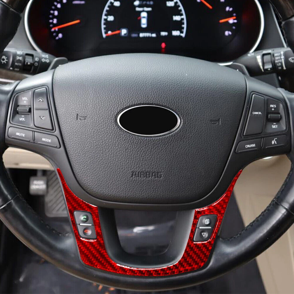 Red Carbon Fiber Steering Wheel Chin Frame Cover Trim For Kia Cadenza 2014-2016