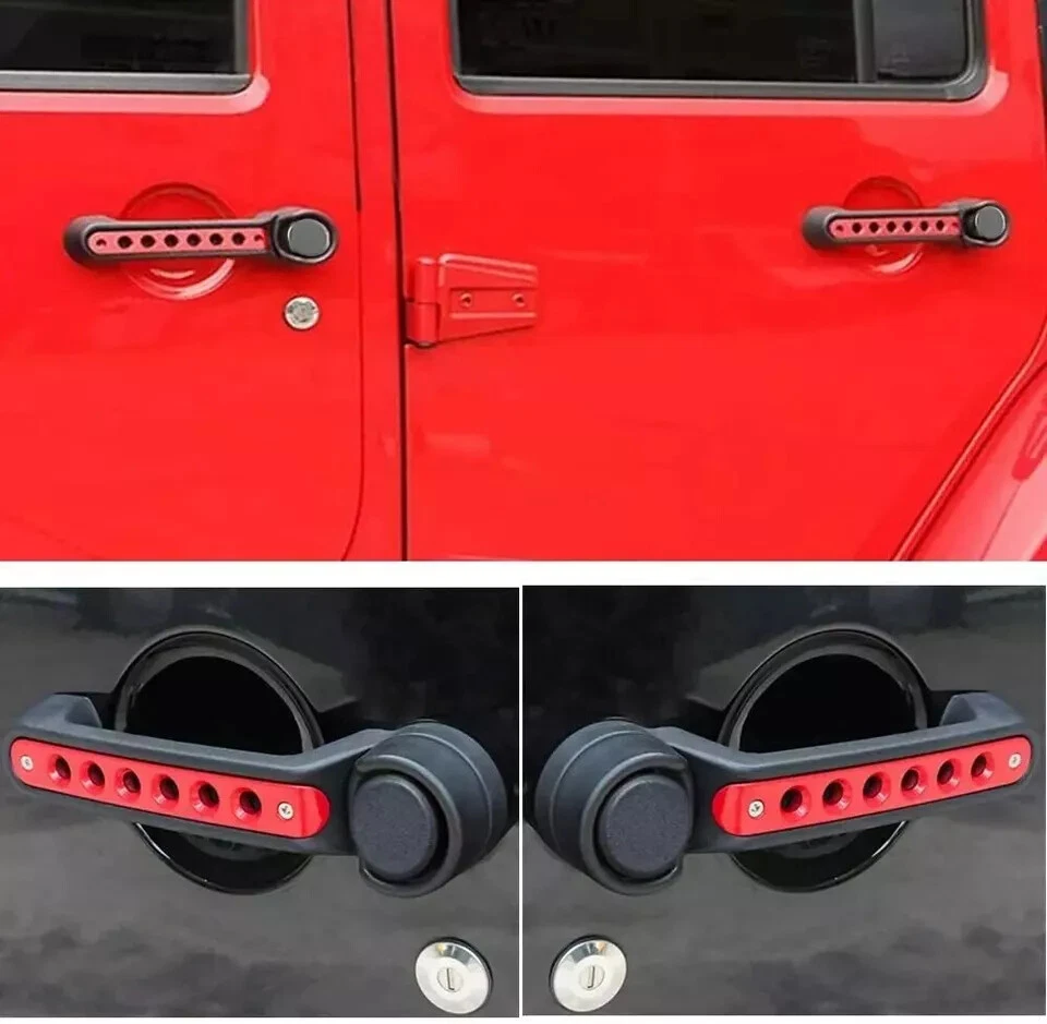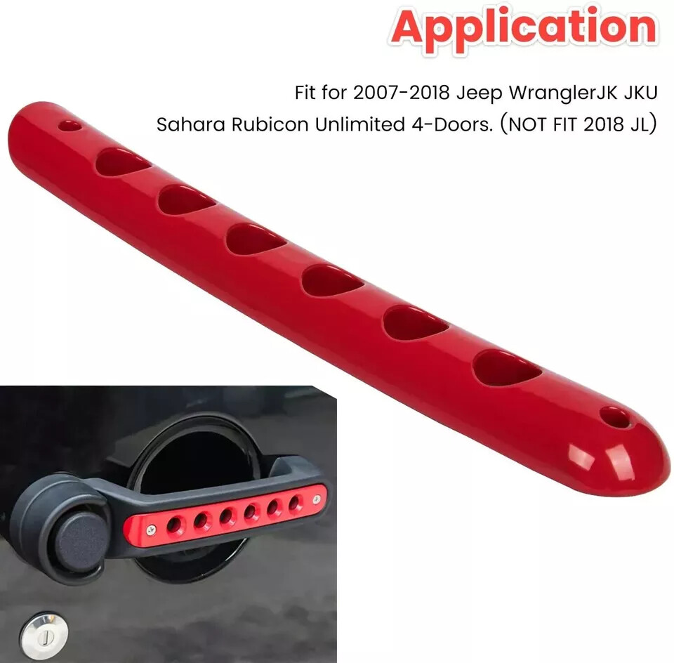 Product Description: đăPerfect Fitmentă Fits to 2007 2008 2009 2010 2011 2012 2013 2014 2015 2016 2017 2018 Jeep Wrangler JK & Unlimited 4 Door, NOT FOR 2018 JL. đăSuperior Qualityă High quality aluminum alloy materials, very strong, strong corrosion resistance, high temperature resistance and scratch resistance. đăUltra Durable Trim Coveră Exquisite craft ramen, improve surface quality, never fade. Treatment effect can also hide fingerprints and minor scratches, make products to be beautiful as new. đăEasy to installăFront and back door handle cover trim, no harmful to your car, screw inserted design, sturdy and corrosion resistant, perfectly matching to your car. đăSatisfaction Guaranteeă If you're not 100% satisfied with your grab handle cover , simply return it for a full refund in 60 days, no questions asked money back guarantee. Premium Support & 1 Year Warranty. BEFORE: The center of the standard grab handle is designed in notch shape, which looks not perfectly and is easy to be scratched by finger nails, keys scratches etc. AFTER: The trim bar adopted superior aluminum alloy material, sturdy and corrosion resistant, which is molding accurately to each arc based on the original car handle. Reserved for precise aside holes, the trim bars can be easily installed in 2 minutes. Description: Aluminum Handle Cover Trim Bar Moulding for 2007 - 2018 Jeep Wrangler JK & Unlimited 4 Door Precision aside holes, easy to install. High-quality aluminum alloy material, very strong, with a strong anti-corrosion, high temperature, scratch-resistant performance. Exquisite craftsmanship pull surface, improve the surface quality, never fade. Handle effect can also hide fingerprints and minor scratches, so that products beautiful as new. Original car radian mold, accurate to each arc, good fitment. Package Included: 3pcs ( Door aluminum grab handle bar cover comes with screws.)