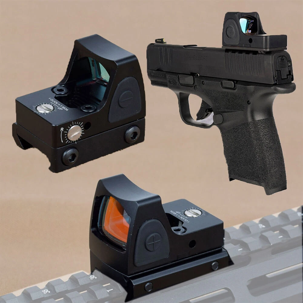 Meinuousa Your Best Online Business Partne Mini Red Dot Tactical RMR Reflex Sight Scope for Pistol Glock 17 19 W/20mm Mount ***Warmly Note*** The Red dot scope is only suitable on GLOCK MOS and slides that have been machined to accept RMR micro dot sights If it is any other model, it needs to be paired with a universal base. About this item 【FULL FIELD OF VIEW】 The 20mm reflector adopts a tubeless design with a wide field of view and can quickly capture the target. Very suitable for shooting from short-range targets to medium-range targets on hunting trips.The sight of the scope is a red dot and has an adjustable function. The bullet will always hit you the location of the red dot. 【MULTI-LEVEL BRIGHTNESS】:Enjoy 5 levels of brightness settings that help you achieve pinpoint accuracy even in the brightest or lowest levels of lighting,features adjustable elevation and windage dials,So it has Elevation、Windage adjustment functions to easily adapt to any environment. 【Very sturdy and secure rail mounting system】: Waterproof and shockproof, aluminum sturdy construction and mounts promise red dot sight will stand up to extreme conditions.Will not come loose, made to last. 【Easy to Install and Adjust】: fully adjust the dot, windage & elevation quickly and change the included battery within seconds.Mini RMR Red Dot Sight Collimator Sight Scope fit 20mm Weaver / Hunting Rifle Sight, intended for use on weapons Mount equipped with Picatinny rails. 【Simple 2-button operation and Auto Off】 (+) and (-) buttons are used to power the device up/down and increase/decrease the aiming point brightness level.The RDS is equipped with intelligent power management to prolong battery life when not in use. After a period of three hours of inactivity. Description Material: Metal Magnification: 1x Flight distance: 100M brightness :5 levels 1 Click = 1 MOA Sunrise color: Red Night marking color: Red Clamp: 20mm Applicable model: Glock 17 19 Net weight: 66g Gross weight: 201g Product size: 45 * 33 * 39mm Storage box size: 130 * 95 * 65mm Features: Light and compact, ideal for pistols No tube design for conventional fast shooting of moving targets. Adjustable wind resistance and height (including tools) Integrated installation of standard 20mm guide rail. Packing list: 1*Mini internal red dot sight 3*Small wrench 1*Tools 4*Screw 1*CR2032 battery 1*Rag 1*Manual 1*Storage box Payment Shipping Returns Contact Us About US - We accept the payment through :Credit, debit, and gift cards, Apple Pay, Google Pay, PayPal, and PayPal Credit. - Payment must be fulfilled within 4 days after the end of auction. - Please make sure your ebay address is correct. Or not, please correct it before payment. - If you are a big customer, Please contact with us about the item's PRICE and SHIPPING. - Your feedback & suggestion is deeply appreciated, thanks. On Dec 23, 2024 at 22:09:05 PST, seller added the following information: