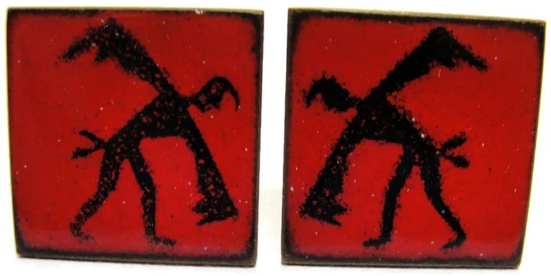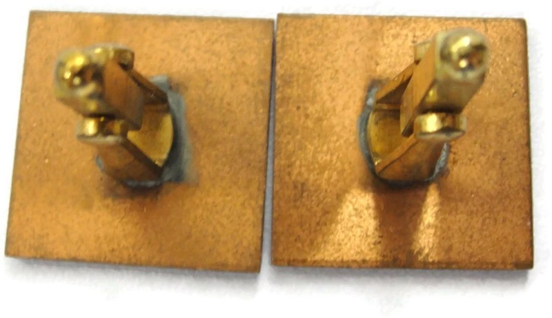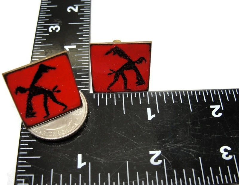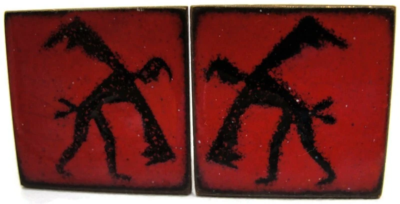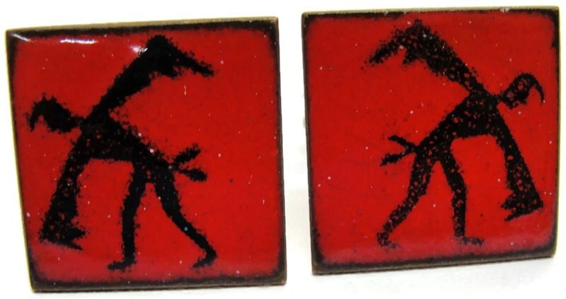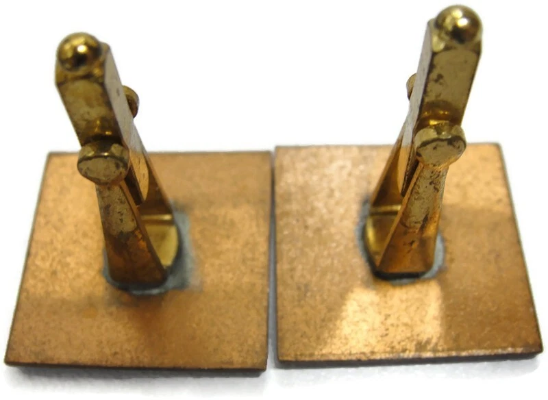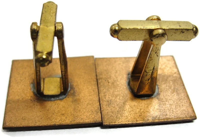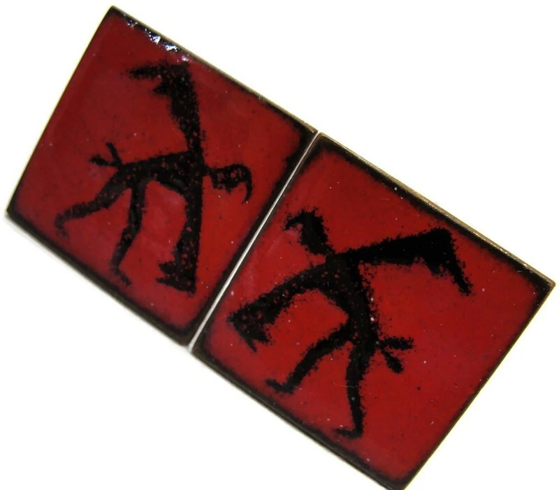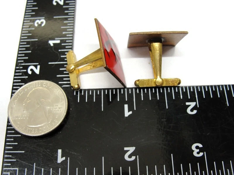 These unbranded red enamel copper cufflinks are perfect for adding a touch of vintage charm to your wedding attire. Square in shape, they're an elegant accessory for any dress shirt. • Red enamel copper cufflinks • Square shape • Suitable for weddings • Vintage appeal • Unbranded