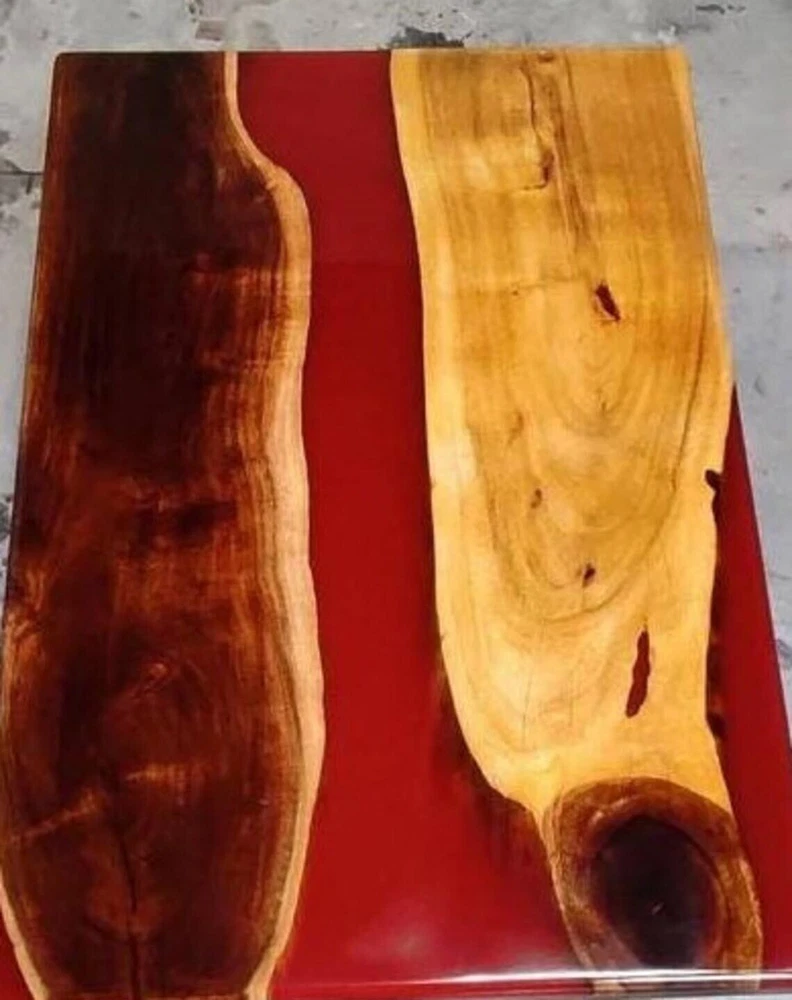 Red Epoxy wooden Table, Epoxy Table Top, Resin River Live Edge Epoxy Table,