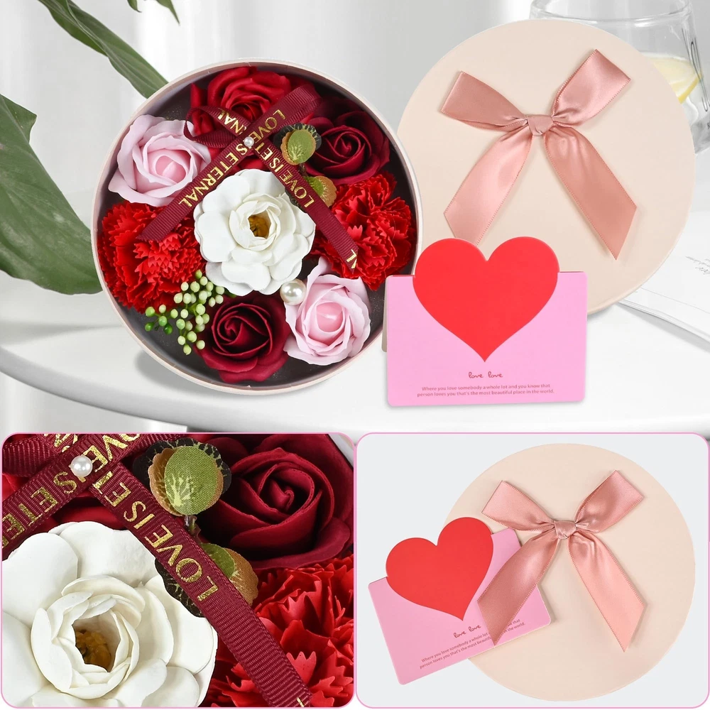 Red Fancy Soaps for Women Gift, Silk Flowers, Flower Soap Set in Gift Box Valentine's Day Gift for Her, Mother, Wife, Girlfriend, Someone Who Arranges Flowers in Wedding Birthday Anniversary Product Details Color: Red Flower Brand: TECHSHARE MPN: Does not apply UPC: Does not apply EAN: Does not apply Brand: TECHSHARE Plant or Animal Product Type: Rose Color: Red Flower Material: Silk Recommended Uses For Product: gifting, decoration Brand: TECHSHARE Plant or Animal Product Type: Rose Color: Red Flower Material: Silk Recommended Uses For Product: gifting, decoration Indoor/Outdoor Usage: Indoor Package Information: Box Occasion: Valentine's Day Number of Items: 1 Container Shape: Round Item Package Quantity: 1 Unit Count: 1.0 Count Manufacturer: TECHSHARE Product Dimensions: 6.3 x 6.3 x 3.1 inches Item Weight: 7 ounces Country of Origin: China Date First Available: December 20, 2023 ELEGANT DESIGN, UNPARALLELED SOPHISTICATION - Indulge in the artistry of our round flower boxes, meticulously crafted for those who appreciate beauty in every detail. The exquisite design sets it apart as a standout Valentine's Day gift for her. LONG-LASTING ELEGANCE - Crafted from high-quality materials, our flower boxes ensure enduring charm, promising longevity and durability. Unlike other options, our round boxes provide a timeless symbol of affection, adding a touch of mystery, elegance, and romance to your gift-giving experience. EXQUISITE CRAFTSMANSHIP - Our flower ornaments showcase brightly colored roses, complemented by an exquisite gift box adorned with ribbon bows, creating a romantic and elegant presentation. The novel and unique styles, coupled with free blessing cards, allow you to convey heartfelt wishes for your loved ones. MULTIFUNCTIONAL STORAGE AND DISPLAY - Elevate your storage with our round flower boxes. Beyond traditional uses, these versatile and stylish boxes effortlessly store jewelry, hair accessories, and more with elegance. Transform them into charming display boxes for flowers, candy, snacks, fruits, and other delightful treats. 8-HOUR CUSTOMER SUPPORT - Experience peace of mind with our commitment to prompt and responsive customer service. Contact us with any questions or concerns, and we'll provide assistance within 8 hours. Your satisfaction is our priority!
