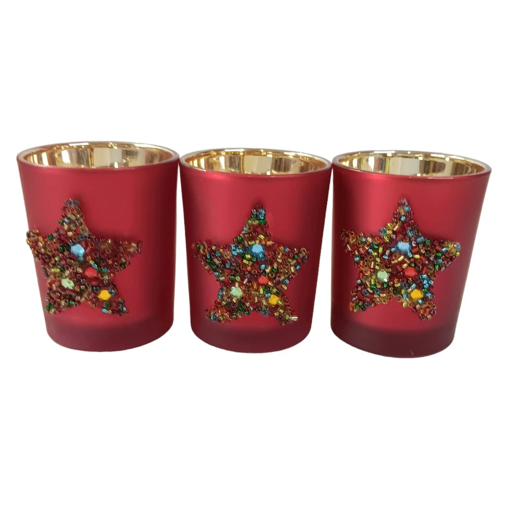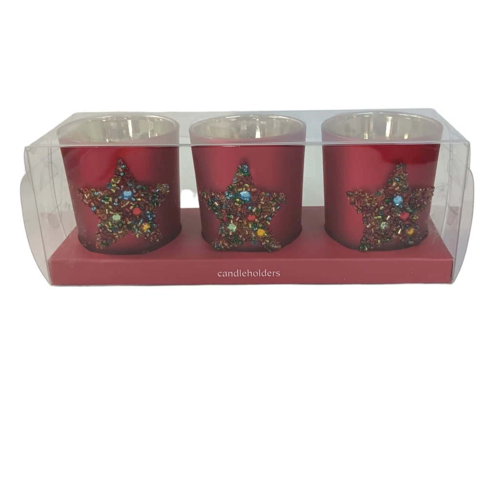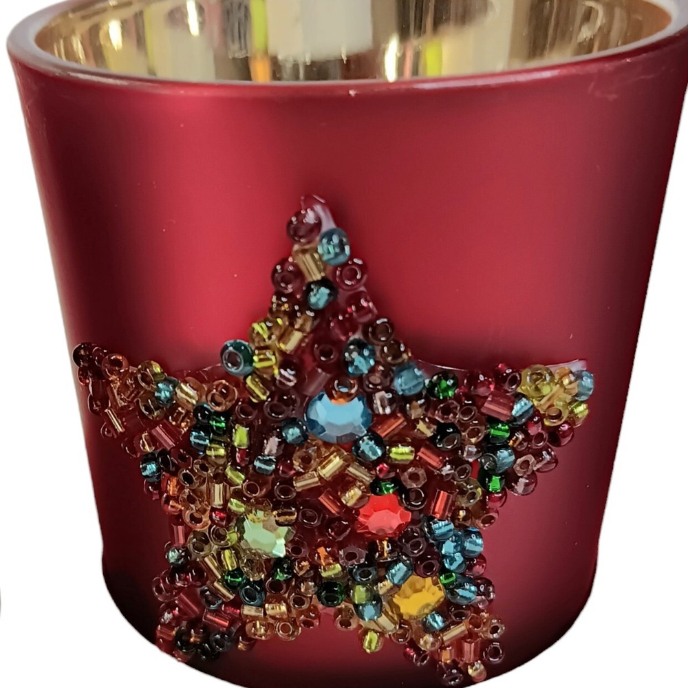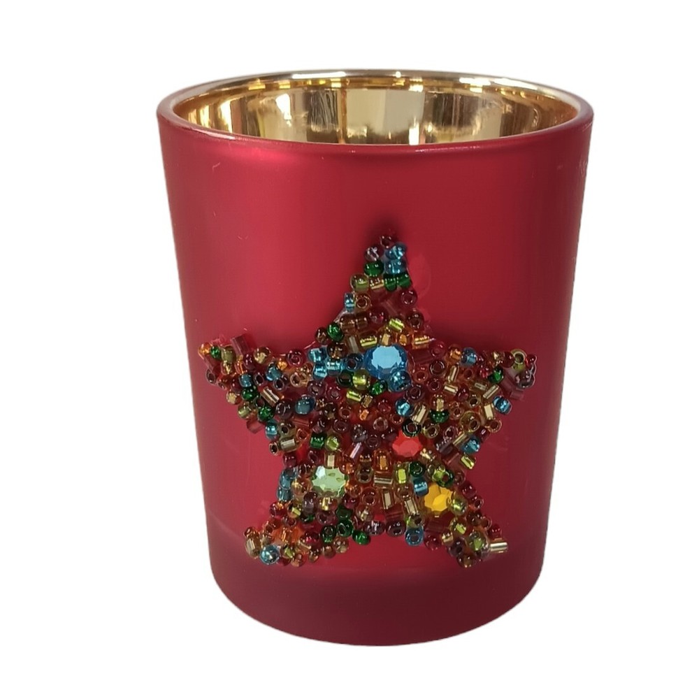 Occasion: All Occasions Additional Parts Required: No Color: Red Character: Star Suitable For: Tea Light, Votive Candle Brand: Pier 1 Imports Material: Glass Type: Candle Holder Features: Beaded Item Height: 2.5"
