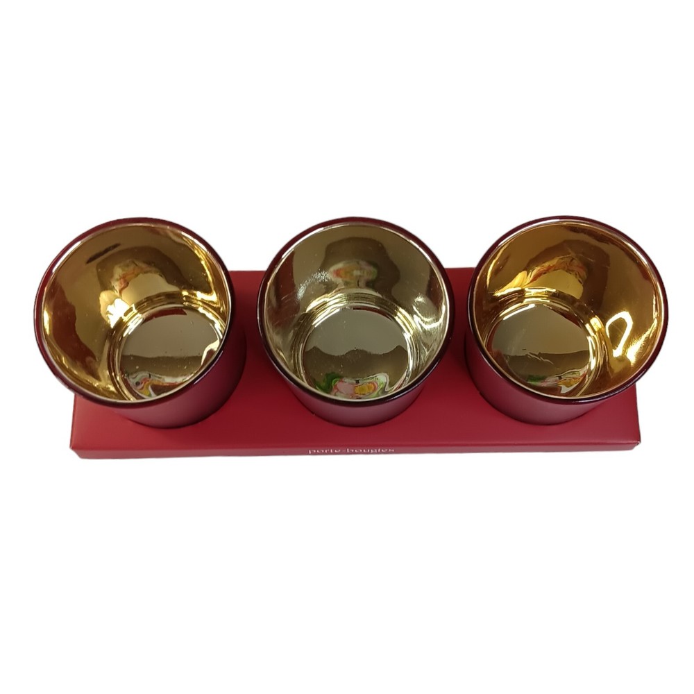 Pier One Glass Candleholders Red Frosted Star Bead Design Three in a box New in box Approximately 2.5" Tall For use with votive or tea light candles Excellent condition *Four boxes available *