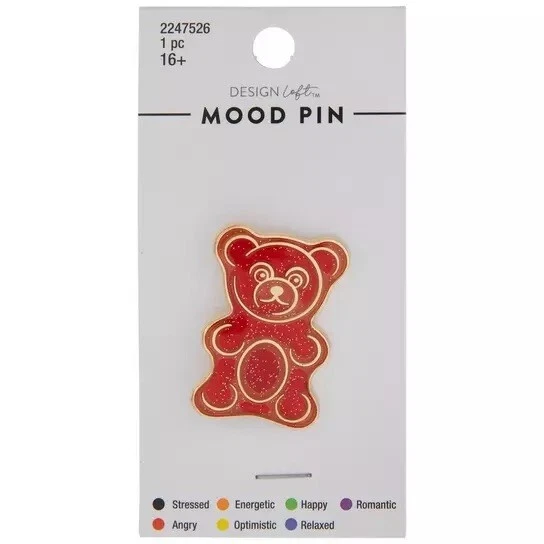 Brand new! If you hold or touch the pin, it changes color just like a mood ring! Super fun and cute. The base color is the shade of red shown in the photos. Customize your clothing and accessories with colorful icons that showcase your likes in this life! Gummy Bear Enamel Mood Pin is made of gold-colored metal and boasts an enameled gummy bear design with a sparkling finish that changes colors depending on your mood. Pin it to any fabric item you want to add a sense of trendy fashion to. Dimensions: 1.25" x 0.88" Material: Metal & Enamel Color: Gold & Red Age Grade: 16+ Quantity: 1