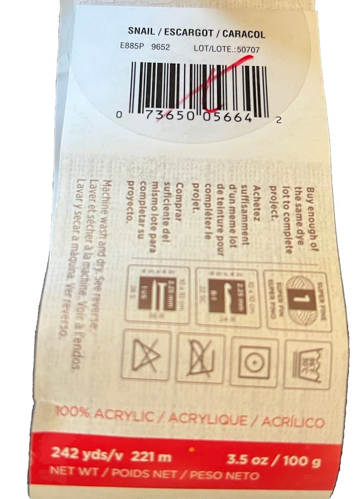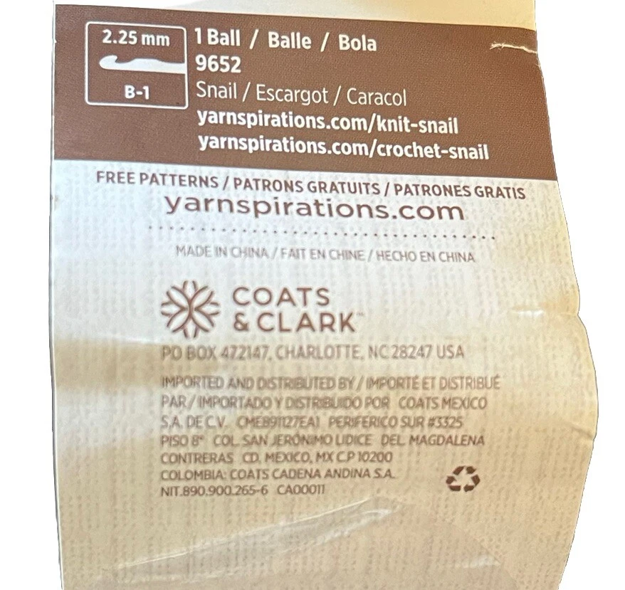Suitable For:Crafts, Knitting, CrochetingShape:BallUnit of Sale:UnitStyle:SockColor:Multi-ColorUPC:0073650056642Fiber Content:AcrylicProduct Line:AmigurumiModel:SnailWeight:1 - Super Fine/Sockgtin13:0073650056642Type:ThreadBrand:Red HeartCountry/Region of Manufacture:China