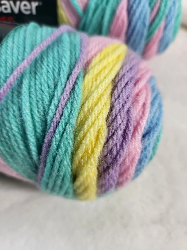 Add some vibrant color to your knitting or crocheting with this lot of Red Heart Super Saver striping yarn. The baby rainbow design is perfect for creating cute and playful pieces, while the acrylic fiber content ensures warmth and comfort. The medium/worsted weight yarn is versatile and easy to work with, making it a great choice for both beginners and experienced crafters. This lot includes two skeins of multicolor yarn, each measuring approximately 100 yards. Get creative and let your imagination run wild with this fun and stylish Red Heart Super Saver Lot of 2 Stripes Yarn!