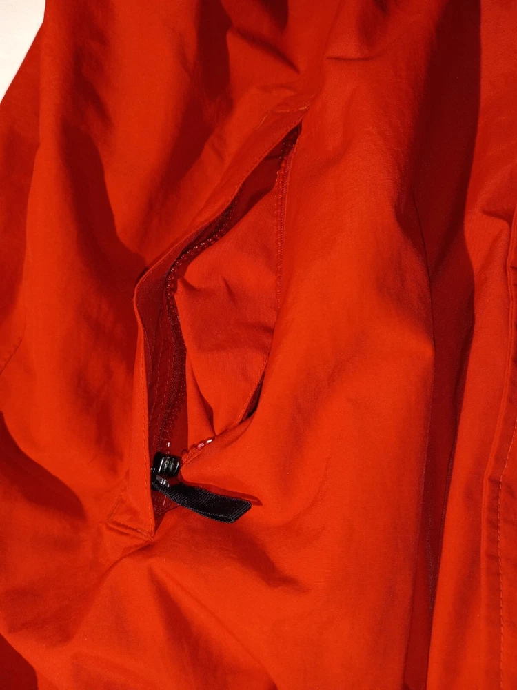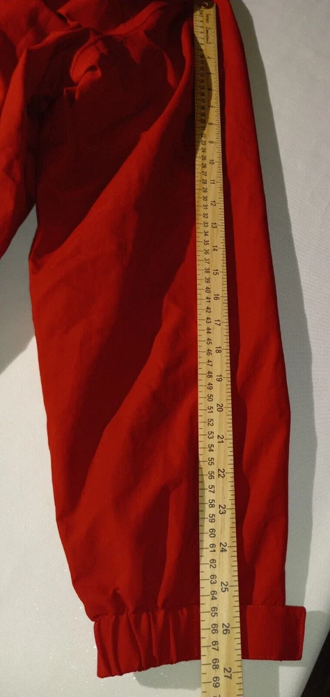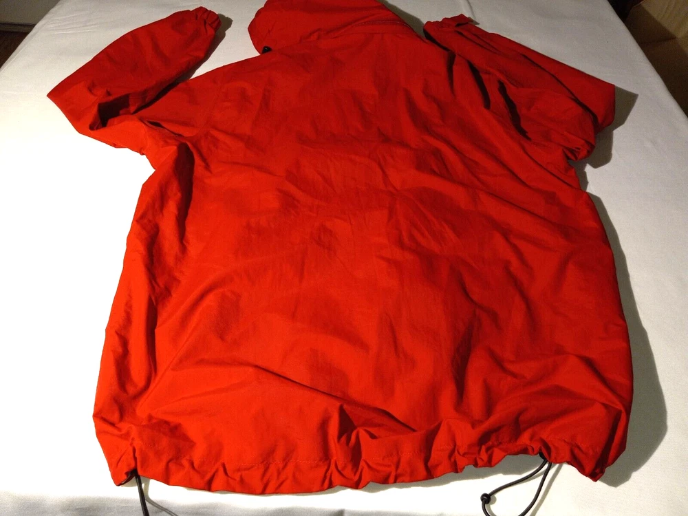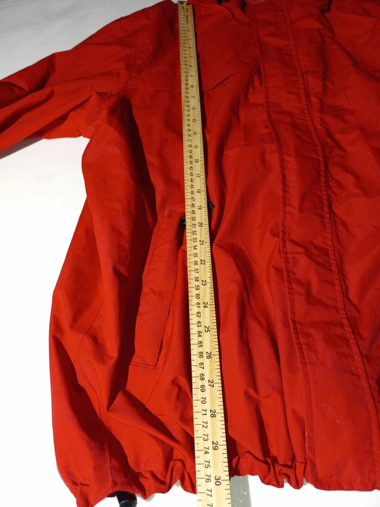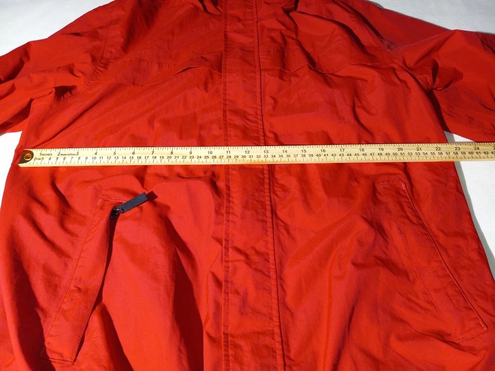 This Eddie Bauer jacket is the perfect addition to any wardrobe. With a solid red color and a designer outdoor theme, it's sure to make a statement. The jacket features a full zip closure and a hood for added protection, along with zipped pockets for storage. The relaxed fit and breathable lining make it comfortable to wear during the summer and spring seasons, and it's suitable for both travel and casual occasions. The jacket is made of nylon with a polyester lining, and it's available in size L for big and tall men. The logo accents add a touch of style to the jacket, making it a versatile piece that can be dressed up or down. (B1-1)