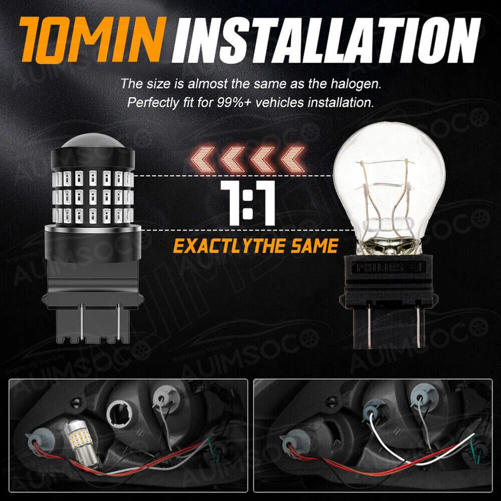 Home Payment Shipping About us Contact us Details About this item [A Higher Level of Visibility] Using high power 3014 SMD LED chips, 54 chips per bulb to produce peak brightness output, and less heat compared to other bulbs that sometimes use 10 chips. Make a big difference for your vehicle! [Non-Polarity Design] Directly replace your factory halogen lamp perfectly with the same socket and electrical connector, for plug and play installation. You needn't worry whether you have a CK or Non-CK socket, these bulbs are universally [Excellent Heat Dissipation Construction] AUIMSOCO bulbs use built of lightweight and high-strength aluminum alloy as bulb body to keep themselves cool, even if they're used in constant-on applications like daytime running lights, they still illuminate non-fading brightness. [Built-in Constant Current IC Driver] A constant current driver is a device that takes any incoming voltage and smooths it out, regulates it, so a steady stream of voltage/current reaches the LED, ensures a bright, efficient and long-lasting illumination. Specification: Application:backup reverse lights, Daytime Running Light,brake tail light,Parking light etc. LED Chip:3014 SMD High Lumen:1200Lm/per bulb, 2400LM/per Set Color Temperature:RED Waterproof Level:Waterproof & Shockproof Working Voltage:DC 9V to 18V Beam Type:360°Beam Angle, no dark spots Lifetime:More than 30000 hours Brightness: No dark spots, 300% Brighter Feature: Low consumption, New look, No polarity design, plug&play, easyinstallation. Just plug & play Used for reverse lights Canbus error free Size: as photo showed. CANBUS: YES, ERROR FREE, Just plug & play Used for Vehicle Backup reverse lights, Daytime Running Light, Brake tail light, Parking light etc. Package including: 2x Red 3157 LED led bulb Shipping Policy Payment Method Returns Policy Shipping Policy Payment Method Returns Policy Home Payment Shipping About us Contact us Store Categories Store Categories LED Headlights H7 H8/H9/H11 9003/H4/HB2 9004/H3 9005/HB3 9006/HB4 9007 9008/H13 LED Fog/Driving Lights H8/H9/H11/H16JP H10/9145/914 H16/5202 9005 9006 880/890/899 881/886 H3 Tools & Stickers For Ford ICE BLUE 8000K WHITE 6000K For Chevy ICE BLUE 8000K WHITE 6000K For GMC ICE BLUE 8000K WHITE 6000K For Dodge WHITE 6000K ICE BLUE 8000K For Ram ICE BLUE 8000K WHITE 6000K For Honda WHITE 6000K ICE BLUE 8000K For Toyota ICE BLUE 8000K WHITE 6000K For Nissan WHITE 6000K ICE BLUE 8000K For Subaru ICE BLUE 8000K WHITE 6000K For Jeep WHITE 6000K ICE BLUE 8000K For Acura ICE BLUE 8000K WHITE 6000K For Mitsubishi WHITE 6000K ICE BLUE 8000K For Cadillac ICE BLUE 8000K WHITE 6000K Other Details About this item [A Higher Level of Visibility] Using high power 3014 SMD LED chips, 54 chips per bulb to produce peak brightness output, and less heat compared to other bulbs that sometimes use 10 chips. Make a big difference for your vehicle! [Non-Polarity Design] Directly replace your factory halogen lamp perfectly with the same socket and electrical connector, for plug and play installation. You needn't worry whether you have a CK or Non-CK socket, these bulbs are universally [Excellent Heat Dissipation Construction] AUIMSOCO bulbs use built of lightweight and high-strength aluminum alloy as bulb body to keep themselves cool, even if they're used in constant-on applications like daytime running lights, they still illuminate non-fading brightness. [Built-in Constant Current IC Driver] A constant current driver is a device that takes any incoming voltage and smooths it out, regulates it, so a steady stream of voltage/current reaches the LED, ensures a bright, efficient and long-lasting illumination. Specification: Application:backup reverse lights, Daytime Running Light,brake tail light,Parking light etc. LED Chip:3014 SMD High Lumen:1200Lm/per bulb, 2400LM/per Set Color Temperature:RED Waterproof Level:Waterproof & Shockproof Working Voltage:DC 9V to 18V Beam Type:360°Beam Angle, no dark spots Lifetime:More than 30000 hours Brightness: No dark spots, 300% Brighter Feature: Low consumption, New look, No polarity design, plug&play, easyinstallation. Just plug & play Used for reverse lights Canbus error free Size: as photo showed. CANBUS: YES, ERROR FREE, Just plug & play Used for Vehicle Backup reverse lights, Daytime Running Light, Brake tail light, Parking light etc. Package including: 2x Red 3157 LED led bulb Shipping Policy Payment Method Returns Policy Shipping Policy (1) All items will be shipped in 1-2 work day after receiving your payment . (2) We ship this item to US only via USPS first class mail. It usually takes 3-6 working days to deliver. It may take 5-8 working days for remote areas, please be patient. (3) Tracking numbers for all orders are added to eBay once they have been dispatched; please login to eBay to find the tracking information for your order. Payment Method 1. You can use a variety of payment methods such as credit, debit, and gift cards, Apple Pay, Google Pay, PayPal, and PayPal Credit. 2. Items will be shipped to your eBay address. Please make sure it is correct. 3. Payment must be received 4 days after auction ended. Returns Policy (1). We offer 60 days return policy. Please contact us within 60 days t from the date you receive your order if you have any issues with the product or want return .Refund will be send after we got your resend package. (2). All returned items should be in the original packaging , return tracking information should be provided .. (3). Buyer is responsible for return shipping cost due to the problem not caused by item quality itself .