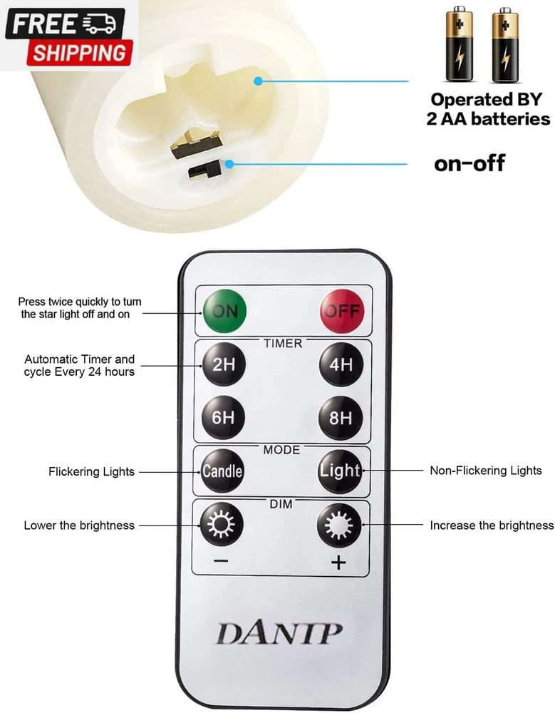 Red LED Flameless Candle with Embedded Star String, 3+4-Piece Set of LED Candles, with 11 Button Remote Control, 24-Hour Timer Function, Flashing Flame, Real Wax, Battery Powered. (Red) ✔New embedded starlight string technology: each candle is wrapped in a silver filament lamp. These light strings consist of 12 to 16 LED fairy lights to provide small, bright dots and a unique and charming appearance. ✔ Realistic flame simulation technology: dancing flames, they will flicker and dance like traditional flame candles. The LED emits light and can be used safely around children and pets. LED candles will not really catch fire, and there is no need to worry about fire-related accidents. Each candle is powered by 2 AA batteries (not included) (requires advanced batteries) ✔10-key remote control: Press the NO button twice to independently control the starlight string. After setting the timer, light the candles at the same time every day for 2 hours/4 hours/6 hours/8 hours (with dual remote controllers) ✔ Real wax (ivory color): Compared with plastic candles, pure wax can produce a softer and more natural luster. These ivory candles are 5 inches, 6 inches, 7 inches, 8 inches, and 9 inches (2.2 inches in diameter), and each set has 5 stepped cylindrical candles. ✔ First choice for modern decoration: these decorative mobile wick candles can be widely used for birthdays, Christmas, home decorations, bars, hotels, parties, holidays, weddings or other occasions. The setting atmosphere of flameless dancing flame: DANIP 5-piece LED embedded light string candle set defines the atmosphere of any room with soft LED lights, flame simulation technology, they will flash and dance like traditional flame candles, but there is no dripping wax, smoke or soot. Add atmosphere and enjoy new conveniences. Embedded light string technology: Each candle is surrounded by bright and delicate light. Wrapped in a silver-finished light string, this is a unique aesthetic effect that combines the appearance of a fairy lamp with the classic beauty of a real flame candle, showing a classic and noble atmosphere. Powerful 10-key remote control: Press the NO button twice to independently control the starlight string. After setting the timer, light the candle at the same time every day, the duration is 2 hours / 4 hours / 6 hours / 8 hours feature: Dancing flames Built-in light string Real wax, bring soft and natural luster Five-tiered pillar candle Each candle requires 2 "AA" batteries (not included) Package Contents: 2 remote control A copy of the manual One 2.2x 5 inch pillar candle One 2.2x 6 inch pillar candle One 2.2 x 7 inch column candle One 2.2 x 8 inch column candle One 2.2 x 9 inch column candle note: eusable battery power, you can reuse them again and again, when you think the starlight and flame light is not bright enough, please replace the new battery. The effect is also excellent. Five-column candle is packed with a protective film, which can protect the candle from dust and make the candle look more noble and bright. When you are really inconvenient to use, you can tear the packaging film without affecting the appearance and effect of the product. Shipping Fast shipping is very important for us. Our standard US shipping service is FREE. Your order will be shipped within 2-3 business days upon full payment received. Your order will be delivered within 2-3 business days after the handling time. We only ship to the confirmed PayPal address. We reserve the right to cancel any order for any reason at any time. We are not responsible for undeliverable addresses. Returns and payment We offer a 30 days return policy from checkout winning date. We allow only PayPal as payment method FeedBack Your feedback very important to us, after you get your package and you are satisfied with our service please leave us positive feedback If you have any problem with your order / any questions please before leave any type of feedback For any questions, using eBay contact system Please visit our eBay store to check out other items for sale! Thank you for shopping at our store.