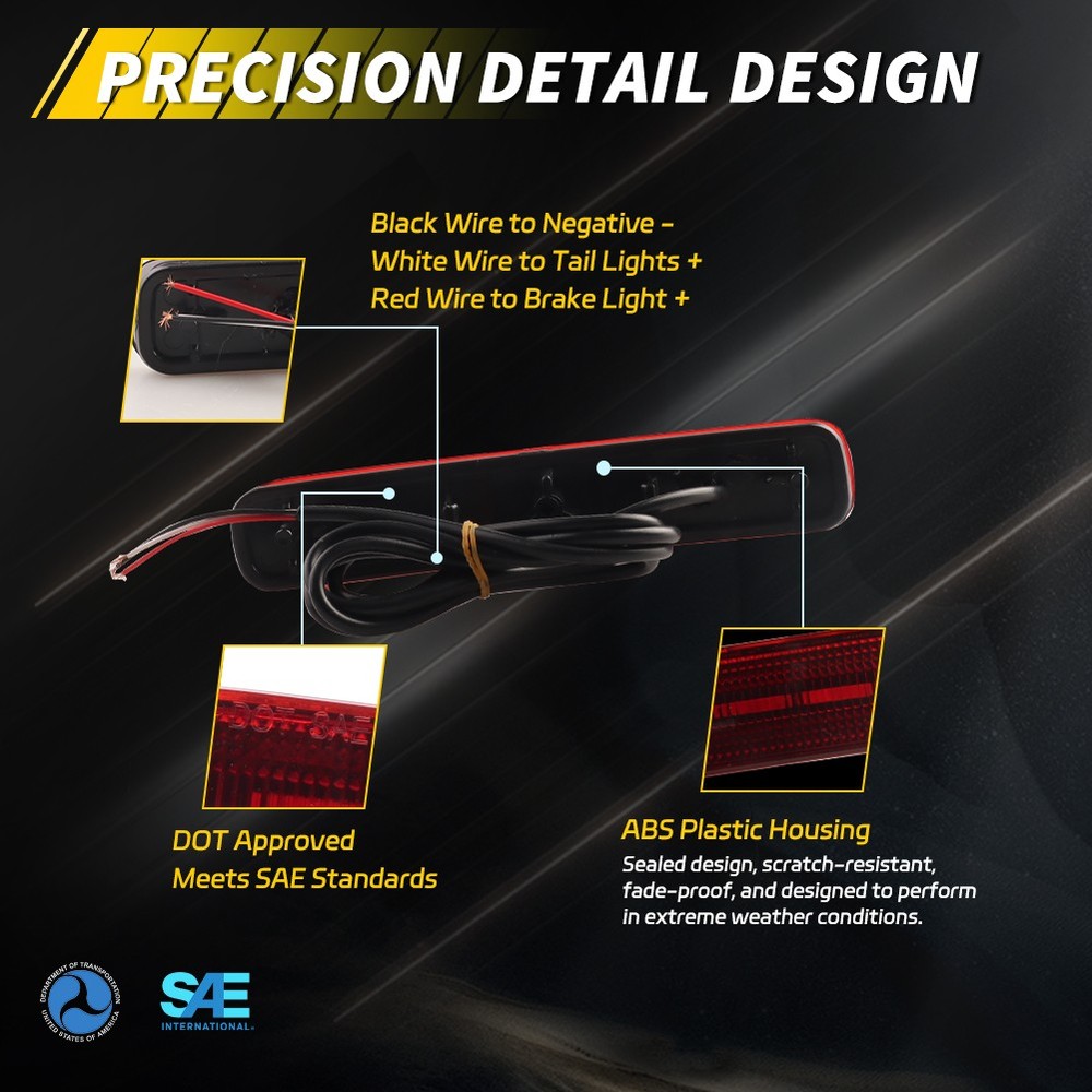 Smoke Red LED Rear Bumper Reflector Tail Brake Light For 11-13 Toyota Highlander