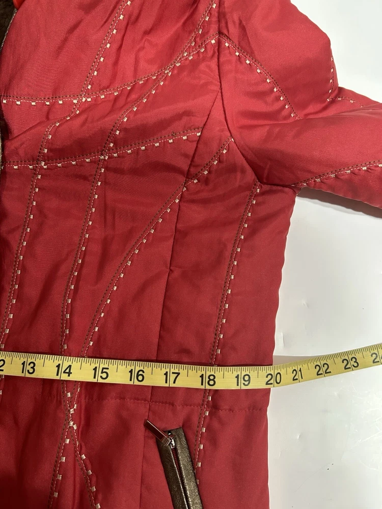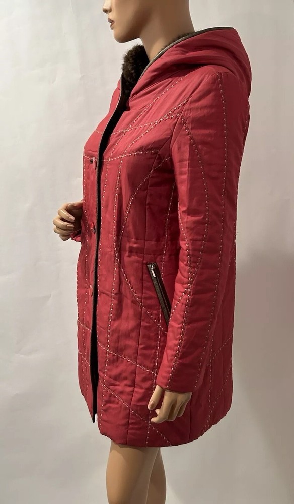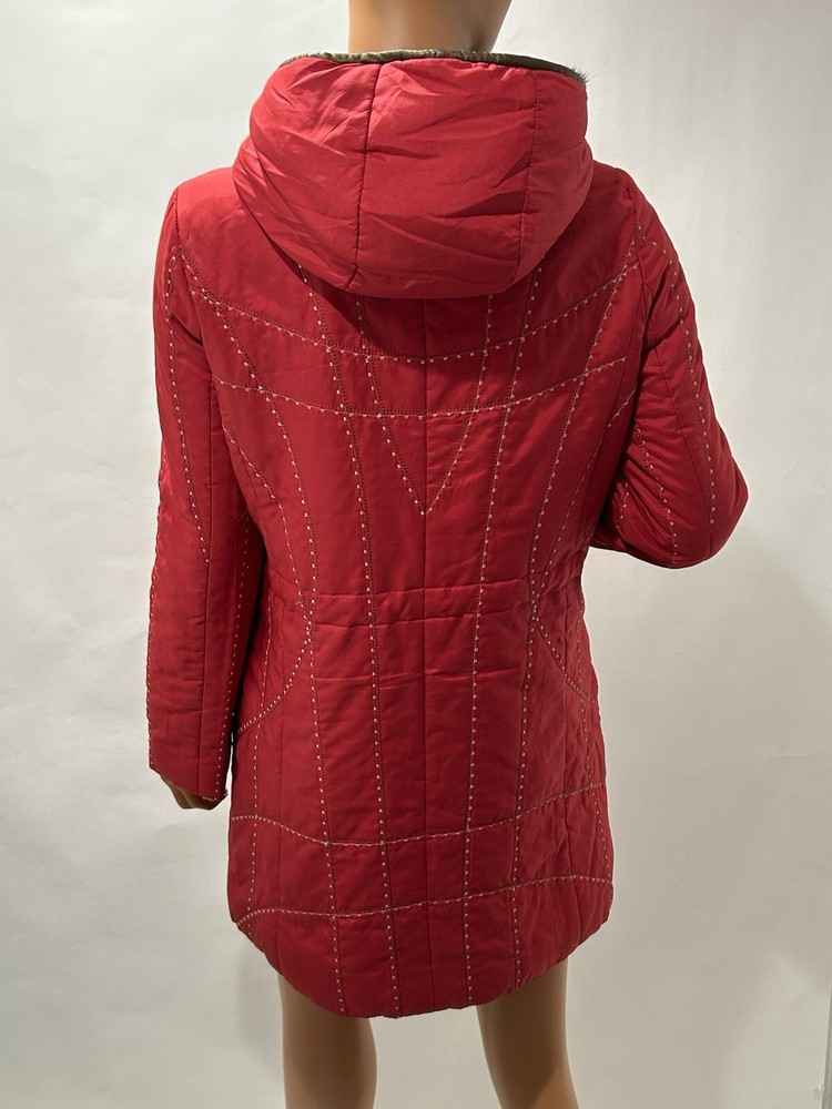 This Leega jacket coat is a limited edition piece that exudes bohemian style with its geometric red pattern and intricate embroidery accents. Made with a polyester outer shell and satin fabric type, it features a mid-length coat with a button closure and zipped pockets. The elastic waist and hood add extra warmth during the winter, fall, and spring seasons, while the bodywarmer provides additional insulation. Perfect for both casual and workwear occasions, this unisex jacket is a must-have for anyone looking for a unique and stylish piece. The jacket is vintage and comes with a fur lining, making it a perfect choice for those who want to add a touch of luxury to their wardrobe. Get your hands on this one-of-a-kind Leega jacket coat today!