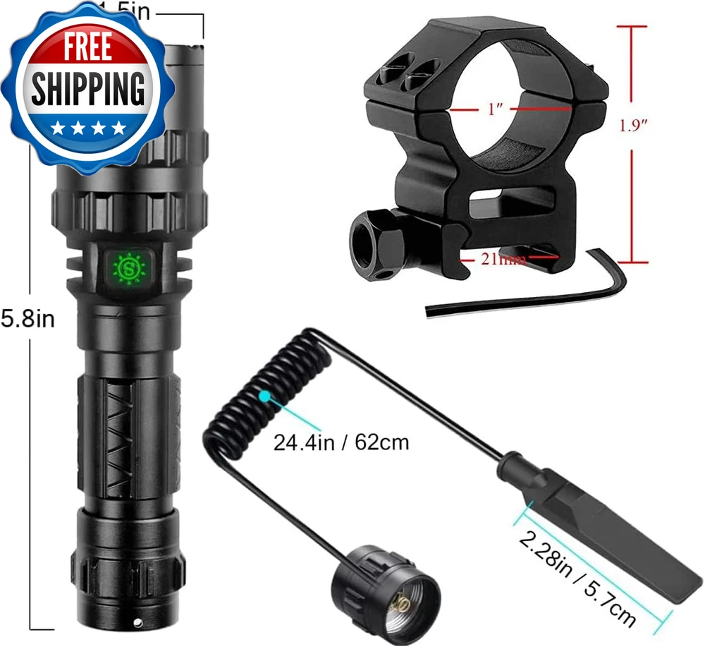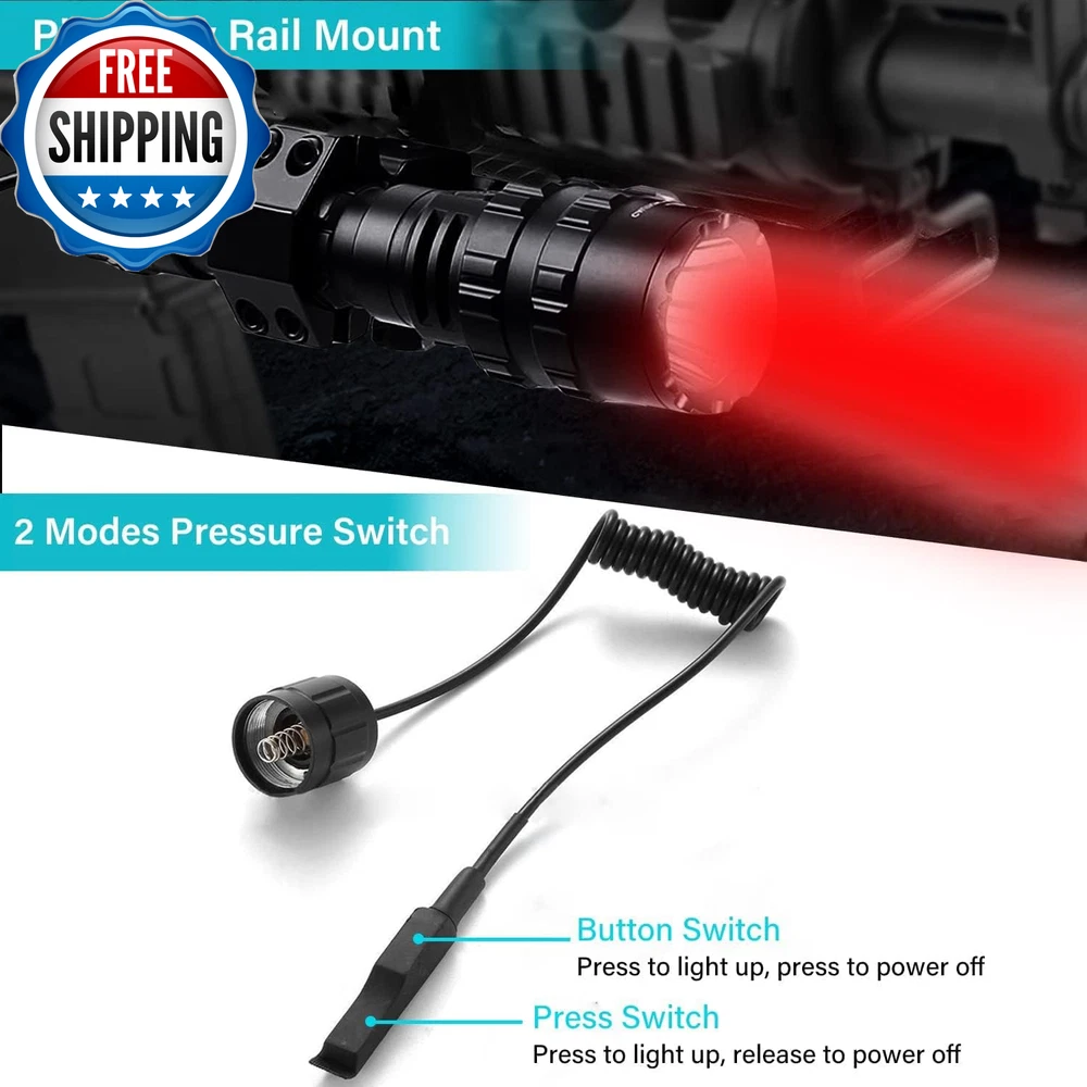 Red Light Hunting Flashlight 350 Yards Coyote Hog Predator Lights USB Rechargeable Tactical Flashlights with Picatinny Rail Mount, Remote Pressure Switch 【Red Hunting Light Super Bright & Long Range】 Adpots red LED chip, 600 Lumens ultra bright, much brighter than normal red light. 100% Pure red light without any loss of light caused by the filters, help you locate prey from a distance without disturbing them. Best for coyote/coon /deer/pig hunting. 【Special Design for Tactical】 When you use the pressure switch, the flashlight will only have one mode, you don't need to cycle through the modes, while you can enjoy 5 modes when using the flashlight only, which can meet different needs. When using the remote switch, you need to switch the light on with the button switch first. 【Picatinny Rail Mount Flashlight】 Comes with 20mm rail mount, the picatinny scope ring perfectly fits for all 21mm standard picatinny/weaver rail. 【USB Rechargeable &Power Indicator】 Integrated USB charging port allows to be safely charged via a car/wall adapter. No need to take the battery out to charge. It can last around 5 hours under high mode when fully charged. Power indicator will be green with enough power, and turns to red when low power. 【Tactical & Water Resistant 】 Made of aircraft-grade aluminum alloy, which makes it hard and shockproof. It has waterproof o-rings with the anti-abrasive coating so the flashlight can be used in the rainy day. Product Description Features: 1. Red Light flashlight for Hunting Animals are not spooked by red light, so red beam led flashlight is very helpful to find animals in the dark, like hogs, coyotes. 2. USB Rechargeable LED Hunting Flashlight red light comes with rechargeable battery. It is convenient for you to charge the flashlight with power bank, computer, car and so on. 3. 5 Lighting Modes : High / Middle/ Low / Strobe / SOS. 4. Picatinny Rail Mount Red light hunting torch comes with 20mm rail mount, picatinny scope ring perfectly fits for all 21mm standard picatinny/weaver rail. 5.Double switch mode: (1) LED Power Display Switch Button (2) Remote Pressure Switch Switch 1: Press switch to light up, press to light off Switch 2: Press switch to light up, release to light off Picatinny Rail Mount Red light hunting flashlight comes with 20mm rail mount, picatinny scope ring perfectly fits for all 21mm standard picatinny/weaver rail. Remote Pressure Switch Two modes remote switch: 1. Press to light up, press to light off.; 2. Press to light on, release to light off. USB Rechargeable LED red light flashlight comes with rechargeable battery and USB cable, can be charged by charger, laptop, power bank. Fully charged battery can last about 8 hours. Power Display LED display on switch. Indicator light is red when charging or low power; Indicator light is green when full power. Aluminum Alloy Powerful flashlight is made of aluminum alloy, which is hard and high quality, and has anti-drop and shock-proof effects. IPX4 Waterproof Red light Hunting flashlight has can reach IPX4 waterproof level, suitable for use in rainy, snowy or humid environments. Battery Powered Flashlight Flashlight hunting kit comes with battery and charger, convenient to charge. NOTE: Please install the "+" and "-" battery terminals correctly. Easy to Install Picatinny rail mount, fit for 1'' Ring Mount Flashlight. Nuts and 4 pcs screws, hex wrench included. Easy to install and remove, and adjustable for size. Tactical Switch Flashlight Flashlight has 2 types of switches for different scenarios. Side LED display switch for handheld illumination and remote switch for tactical hunting. Package Included: 1x WindFire Red Light Rechargeable Tactical Flashlight 1x Picatinny Rail Mount 1x Remote Pressure Switch 1x Lanyard 1x Battery 1x Box Item model number WF-100R Light Source Type LED Power Source Battery Powered Battery Cell Composition Lithium Polymer Light Path Distance 350 Yards Country of Origin China Light Direction Adjustable Batteries Included? Yes Special Features Long Range, High Power, Adjustable Light Modes, pocket size, water-resistant, high lumen, Rechargeable Batteries Required? Yes Material Aluminum Number of Batteries 1 Lithium Metal batteries required. (included) Is Discontinued By Manufacturer No Package Dimensions 7.17 x 4.65 x 2.13 inches Included Components Battery Item Package Quantity 1 Bulb Features Shock and vibration resistant Brightness 600 Lumen Water Resistance Level Waterproof Item Weight 14.9 ounces Battery Description Lithium-Ion Polymer Runtime 5 hours Special Feature function(f) {var _np=(window.P._namespace("DetailPageProductOverviewTemplatesJava"));if(_np.guardFatal){_np.guardFatal(f)(_np);}else{f(_np);}}(function(P) { P.when('A').execute(function(A){ A.on('a:truncate:po-attribute-truncate-0:updated', function(data) { var isTruncated = !data.truncateInstance.getIfTextFits(); var seeMoreElement = document.getElementById('po-attribute-see-more-id-0'); if(seeMoreElement) { seeMoreElement.style.display = isTruncated ? '' : 'none'; } }) }); })); Long Range, High Power, Adjustable Light Modes, pocket size, water-resistant, high lumen, Rechargeable See more Part Number WF-100R Mounting Type side-mount Color Red Light Batteries 1 Lithium Metal batteries required. (included) Recommended Uses For Product hunting Shipping Fast shipping is very important for us. Our standard US shipping service is FREE. Your order will be shipped within 2-3 business days upon full payment received. Your order will be delivered within 2-3 business days after the handling time. We only ship to the confirmed PayPal address. We reserve the right to cancel any order for any reason at any time. We are not responsible for undeliverable addresses. Returns and payment We offer a 30 days return policy from checkout winning date. We allow only PayPal as payment method FeedBack Your feedback very important to us, after you get your package and you are satisfied with our service please leave us pos