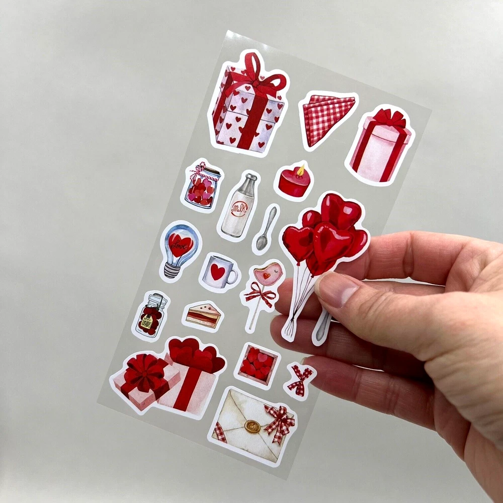 Red Love Hearts Valentine Stickers Planners Scrapbooking Journaling Card Making