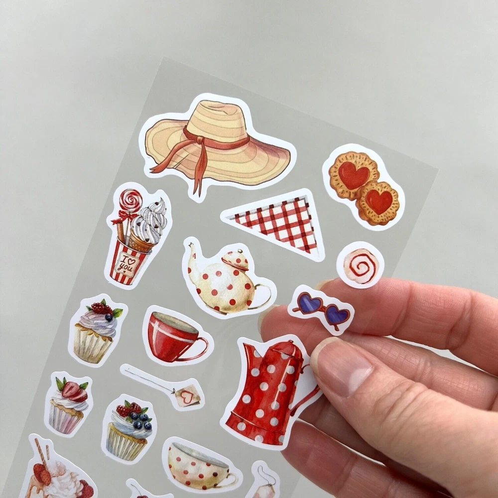 4 sheets. Red hued love, heart, desserts. Romantic Valentine's picnic perhaps? I have more stickers, washi tape and paper for sale. I do combine shipping. Please put all the items you want to purchase in ONE cart and then pay. I will refund you the difference in shipping after shipping label is printed. Let me know if you have any questions through eBay messaging. Thank you for stopping by!