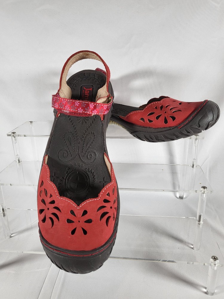 The Red Mary Janes by Jambu are a stylish and comfortable pair of women's shoes for casual occasions. These round toe flats feature a buckle closure and eyelet accents, with a solid red color and floral theme. Made of leather with a foam insole and rubber outsole, these Mary Janes are perfect for the seasons of spring, summer, and fall. The Mary Jane style and brand Jambu add a touch of vintage flair to any outfit, making these shoes a versatile and fashionable choice.