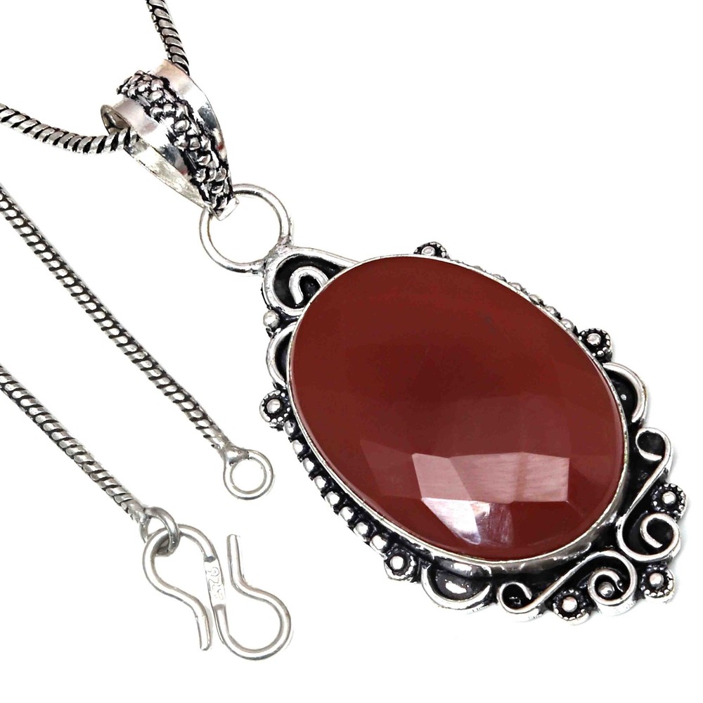 Macrame Jasper Necklace Handmade Red Bohemian Crystal Gemstone Pendant