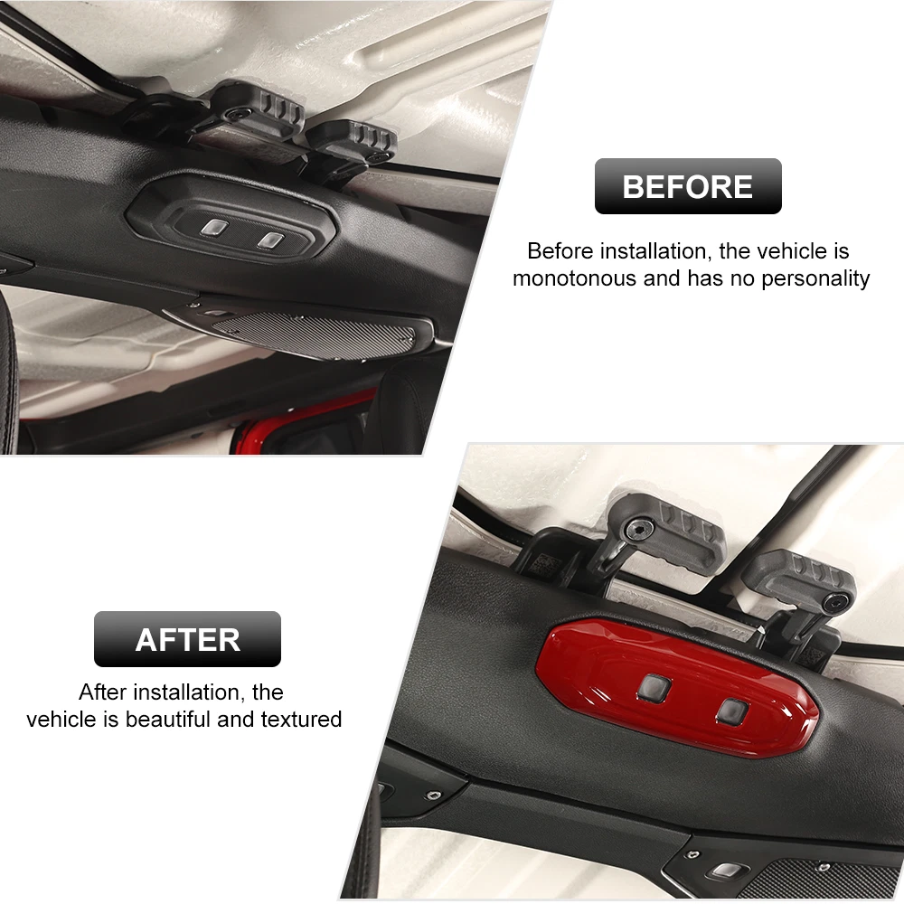 Package include: 2x Overhead light Roof Reading Map Lamp Trim Cover Material: Plastic Manufacturer Part Number: 2024122111 Manufacturer Warranty: 1 Year Type: Center Console Trim Placement on Vehicle: Front Fitment Type: Direct Replacement Brand Type: Aftermarket Branded Color: Red Finish: Polished UPC: Does not apply gtin13: Does not apply Fitment: For Jeep Wrangler JL JT 2024 Features: Durable, Easy Clean, Easy Installation, Scratch-Resistant, Self-Adhesive, Waterproof Brand: CheroCar OE/OEM Part Number: 2024122111YP