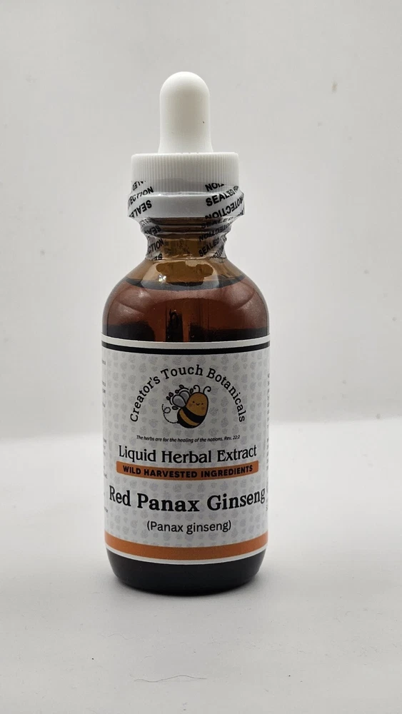 SUGGESTED USE: Shake well. Take 1ml (1/2 full dropper) Add to your favorite beverage. You can also drink with water. Grain Alcohol Tincture + Distilled Water Red Panax Ginseng Tincture by Creator's Touch Botanicals is crafted from premium Red Panax Ginseng root, renowned for its ability to support overall vitality and balance. Known as a powerful adaptogen, Panax Ginseng has been traditionally used to help the body adapt to physical, emotional, and environmental stress. This tincture is designed to help promote energy, mental clarity, and a sense of well-being, while supporting healthy immune function. Key benefits include: Helps promote natural energy levels Supports mental focus and cognitive function Aids in maintaining balanced stress levels Encourages overall vitality and wellness Suggested Use: Take the recommended dose daily or as directed by a healthcare professional. Can be mixed with water or juice. Potential Interactions: While Panax Ginseng is generally safe, it may interact with certain prescription medications, including: Anticoagulants (e.g., Warfarin): May increase the risk of bleeding. Insulin or Oral Diabetes Medications: Ginseng may affect blood sugar levels, requiring adjustments in medications. Stimulant Medications: Ginseng may amplify the effects of caffeine and other stimulants, leading to increased heart rate or blood pressure. Immunosuppressants: It could reduce the effectiveness of these medications. MAO Inhibitors (antidepressants): May lead to enhanced side effects such as headaches or nervousness. Always consult with a healthcare provider before starting any new herbal supplement, especially if you are on medication or have a medical condition. FDA Disclosure: This product is not intended to diagnose, treat, cure, or prevent any disease. The potential benefits of Usnea Lichen Tincture described above have not been evaluated by the Food and Drug Administration (FDA). It's important to consult with a qualified healthcare professional before incorporating any herbal supplements into your routine, especially if you have any underlying health conditions or are taking medications. Single Herb Tinctures/Extracts are made from a single herb or root with a grain alcohol menstrum. Compound Tinctures/Extracts are made from a combination of herbs and/or roots with a grain alcohol menstrum. Glycerites are made from the herb or root in a 100% pure, Kosher certified, food grade vegetable glycerin and distilled water. Dried Herbs and Mushrooms are ethically gathered at peak potency. Any herbs that are purchased by CTB are done so from highly reputable herbal businesses or harvesters. Many are wild-crafted locally with care. Herbs are 100% pure, free of pesticides and herbicides, and are not fumigated or irradiated. The herbs used are non-GMO. (Please note: there are no returns on dried herbs, roots, mushrooms.) MOST IMPORTANTLY: Tinctures are created for intent, not flavor. Please note that basic information provided is listed for educational purposes only. Due to recent governmental restrictions regarding herbal and holistic healing products, I am unable to provide any specific details regarding the effectiveness at treating any health-related issues for any of my products. HOWEVER, many scientific, modern, historical and folkloric studies are available freely online supporting herbal and holistic preparations and their many uses. BOTTLE INFORMATION: 1 & 2 oz bottles come with dropper tops. All are Boston round, amber in color and come with a safety shrink wrap over the top/cap. HERBAL ADVICE AND CONSULTATIONS: Questions relating to products are welcomed, however, personal and/or private advice or consultations are no longer provided. It is not that I don't want to converse with you, as I have met so many wonderful people throughout the world, but the legal establishment's rules and restrictions are quite clear that I cannot do so. The information provided offers a basic compilation of historical and modern herbal remedy suggestions. Many scientific studies are available online supporting herbal and holistic preparations. My descriptions for my products provide basic information and are listed for educational purposes only. Information provided has not been evaluated by the Food and Drug Administration and is not intended to diagnose, treat, cure or prevent any disease. Please note: My primary focus is to provide high-quality herbal products at affordable prices for you. It is suggested you contact your local health care practitioner, private physician or even a good herbal or medical book if you have any questions regarding your health care and herbal needs. HOW ARE THE EXTRACTS MADE? Our proprietary herbal extracts are prepared on-site for 8 to 12+ weeks in the time-honored way. All herbs are ethically gathered at peak potency. Extracts are crafted using 80-100% pure grain (corn) alcohol (80 proof is 40% ABV, alcohol by volume), unless otherwise specified. For customers who prefer not to ingest alcohol, simply drop the extract into a small amount of boiling hot water, tea or coffee and stir. The alcohol preservative will near completely evaporate within about a minute. The amount of alcohol in the average dose of tincture is equal to the amount of alcohol in a ripe banana. ARE YOUR HERBS ORGANIC? All herbs are ethically gathered at peak potency. Any herbs that are purchased by CTB are done so from highly reputable herbal businesses or harvesters. Many are wild-crafted locally with care. Herbs are 100% pure, free of pesticides and herbicides, and are not fumigated or irradiated. The herbs used are non-GMO. Not all herbs are available in the United States and, therefore, must be obtained from overseas. In these cases, all herbs are purchased from highly reputable companies that test their products to ensure potency, quality and safety; that there are no chemicals, pesticides or heavy metals; microbiological tests are performed on every batch of finished product that comes 