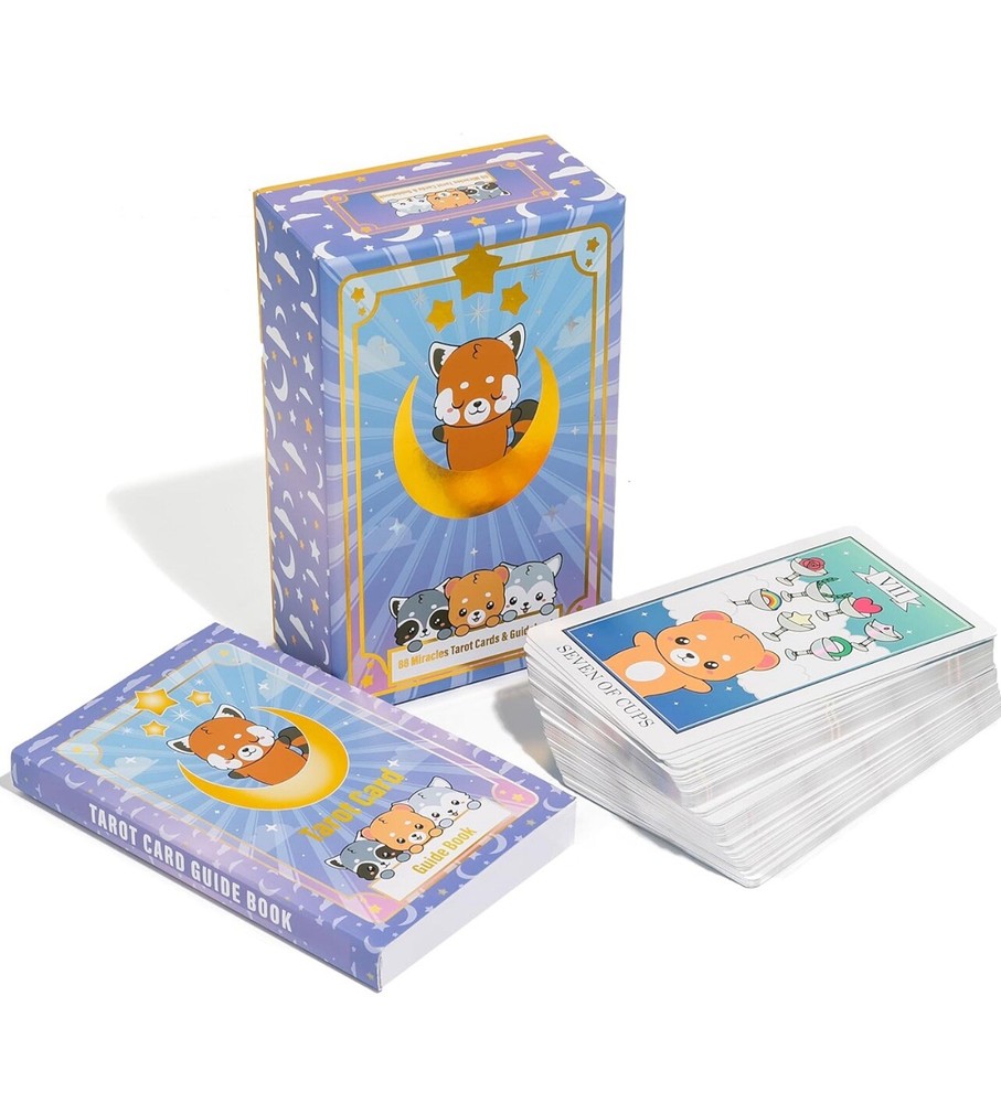 Red Panda & Friends 88 Miracles Tarot Card & Guidebook (NEW). Enchanting Design - Enter the mystical world of tarot with Red Panda & Friends Tarot Cards. These oracle cards offer vibrant prints and imagery that evoke a sense of mystery, serenity, and anticipation. Crafted by spiritual artists from the USA, each card is a window to accurate symbolic interpretation. Premier Quality & Durability - Constructed with the intention to accompany you through countless sessions of introspection and guidance, these tarot cards are made from high-quality materials. Their beautiful colors, refined edges, and the tactile pleasure they provide during shuffling and handling are a treat to inspire and endure. Comprehensive Guidebook Included - Improve your understanding of tarot with our guidebook, offering three times the insight found in typical manuals. This compendium of symbolic meanings delves into the past, present, and future, enriching your readings and expanding your interpretative skills with detailed explanations of each oracle card's significance. Instant Access to Online Course & Community - Whether you're a beginner eager to learn the art of tarot reading or an advanced practitioner looking to deepen your knowledge, our exclusive online course and community offer a space for growth and connection. Engage with fellow enthusiasts, share insights, and enhance your practice with the support of a like-minded collective. Perfect Gift of Mystical Insight - In the realm of tarot, the tradition holds that a deck received as a gift carries special energy and positive karma. Embrace this belief by gifting the Red Panda & Friends Tarot Cards to someone special or treating yourself with love and intention. It's an invitation to embark on a personal journey of discovery and enlightenment.