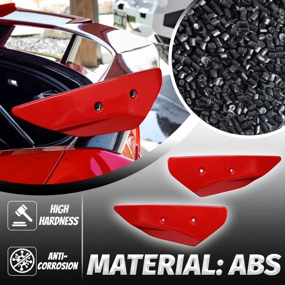 Color: Red Brand: BILLFARO Material: ABS Type: Rear High Wing Spoiler Side Winglet Features: Easy Installation Manufacturer Part Number: Does not apply gtin13: Does not apply Placement on Vehicle: Rear UPC: Does not apply
