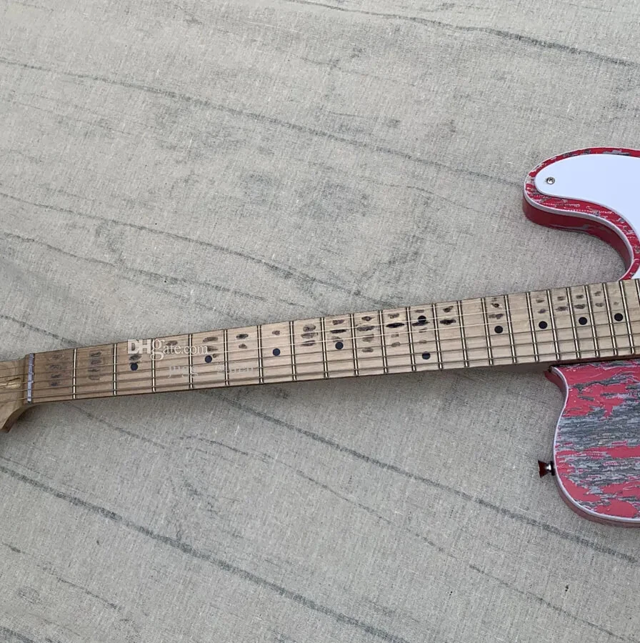 Red Relic Electric Guitar Chrome Hardware White Pickguard Vintage Tuners