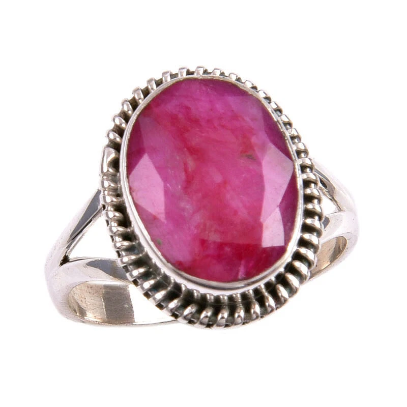 Red Ruby(Simulated) Gemstone Handmade 925 Sterling Silver Gift Ring S.7.5