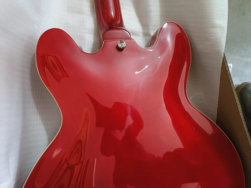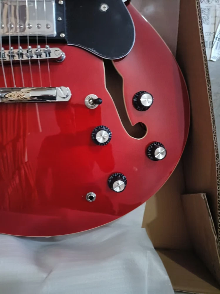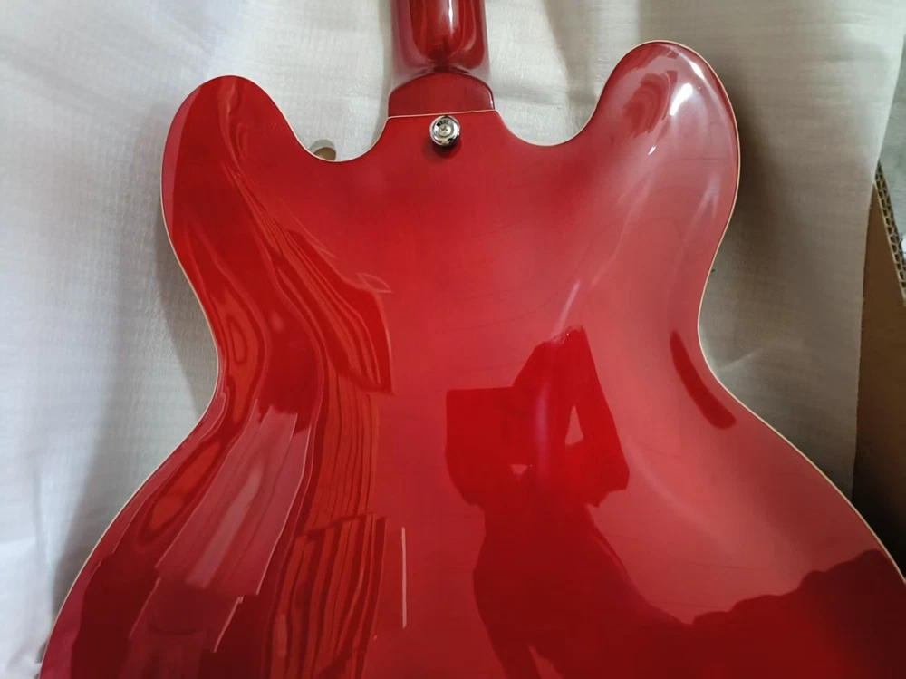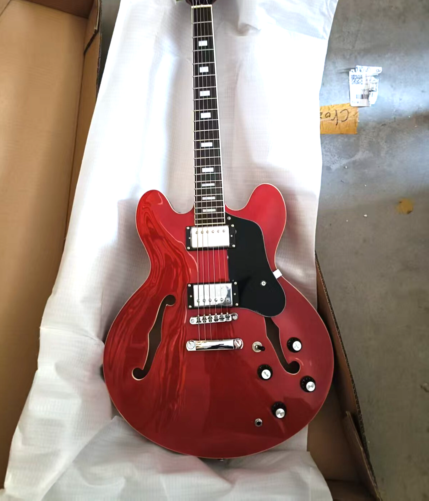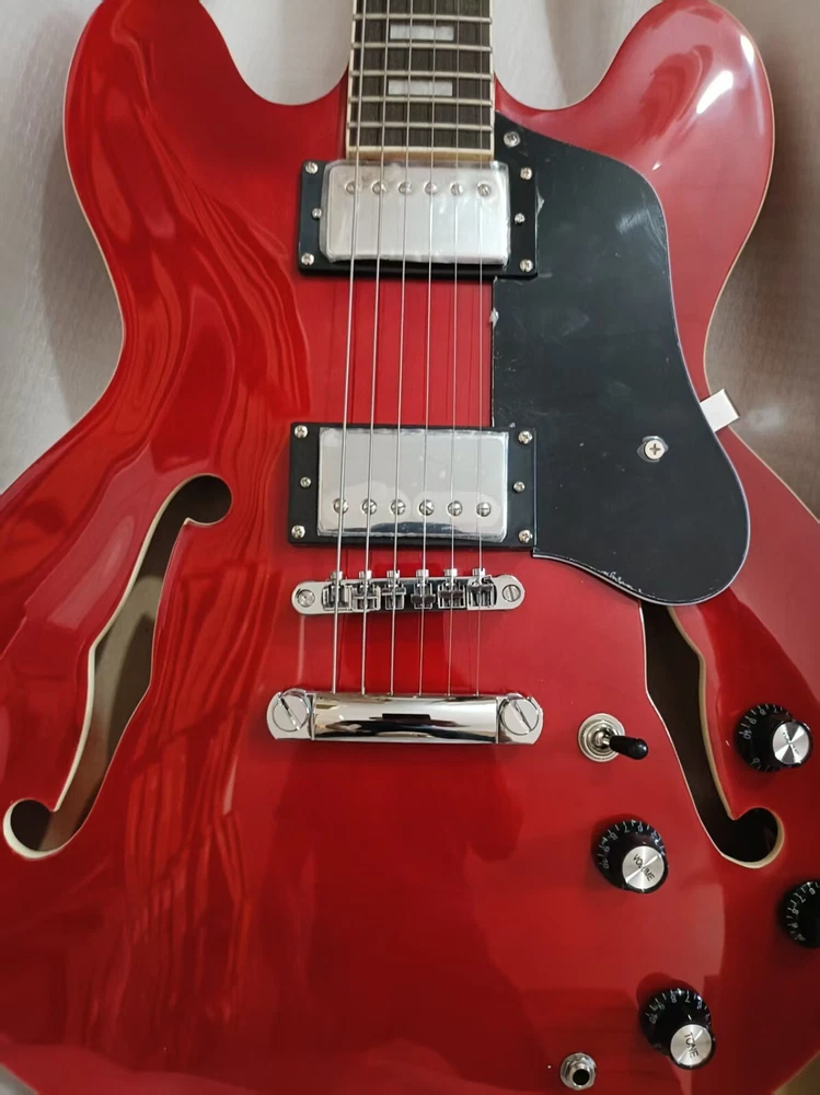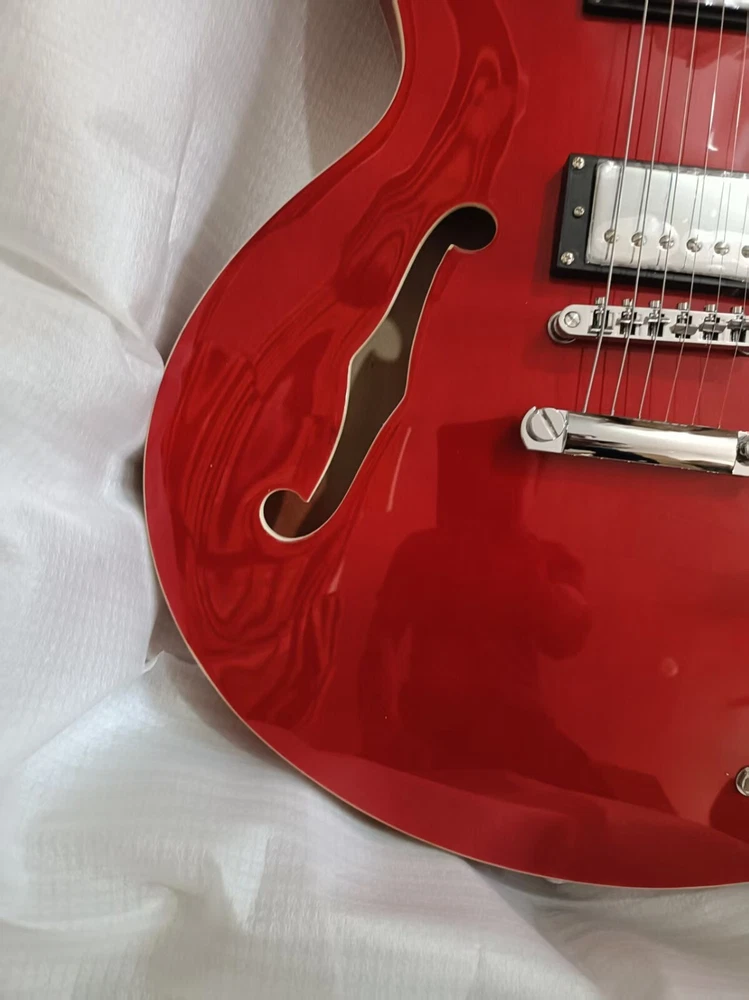 Semi Hollow Red 335 Electric Guitar with Scalloped Square Inlays