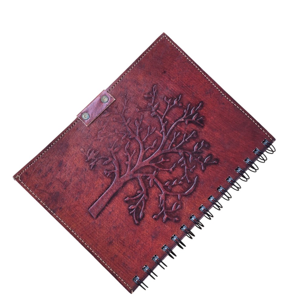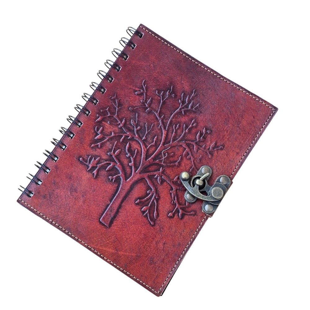 Red Spiral Bound Leather Journal with Metal Closure 100 Pages