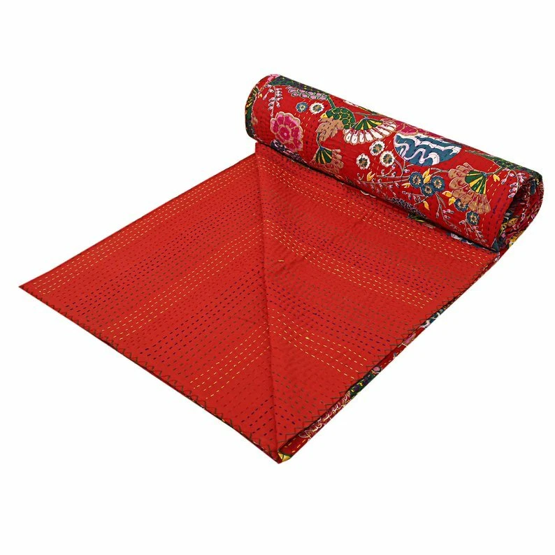 Product Details: Item - 1 PC Indian Fruit Print Kantha Quilt. Fabric - 100% Cotton Fabric. Dimension - 90" X 108" Inches ( 225 X 274 CM) Colour - As Show in image Wash Care - Normal Hand Wash In Cold Water. Product Description: Indian Floral Cotton fabric Hand Kantha Quilted Queen Size Quilt, Blanket / Bedspread These Queen Kantha quilt is made by two layer cotton fabric. These Kantha quilt is made by most of valuable hand art to give a unique Kantha pattern. Payment policy: We accept the payment by pay pal. International buyers are responsible for their countries duties and taxes.
