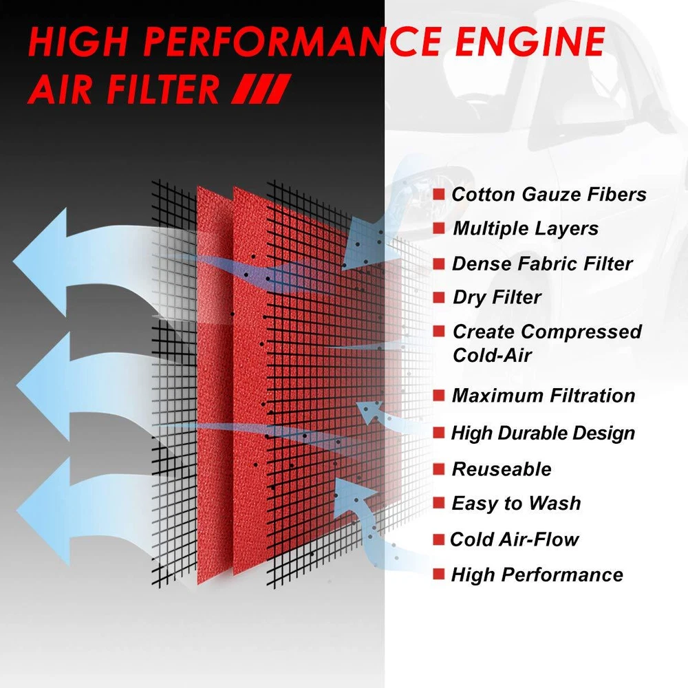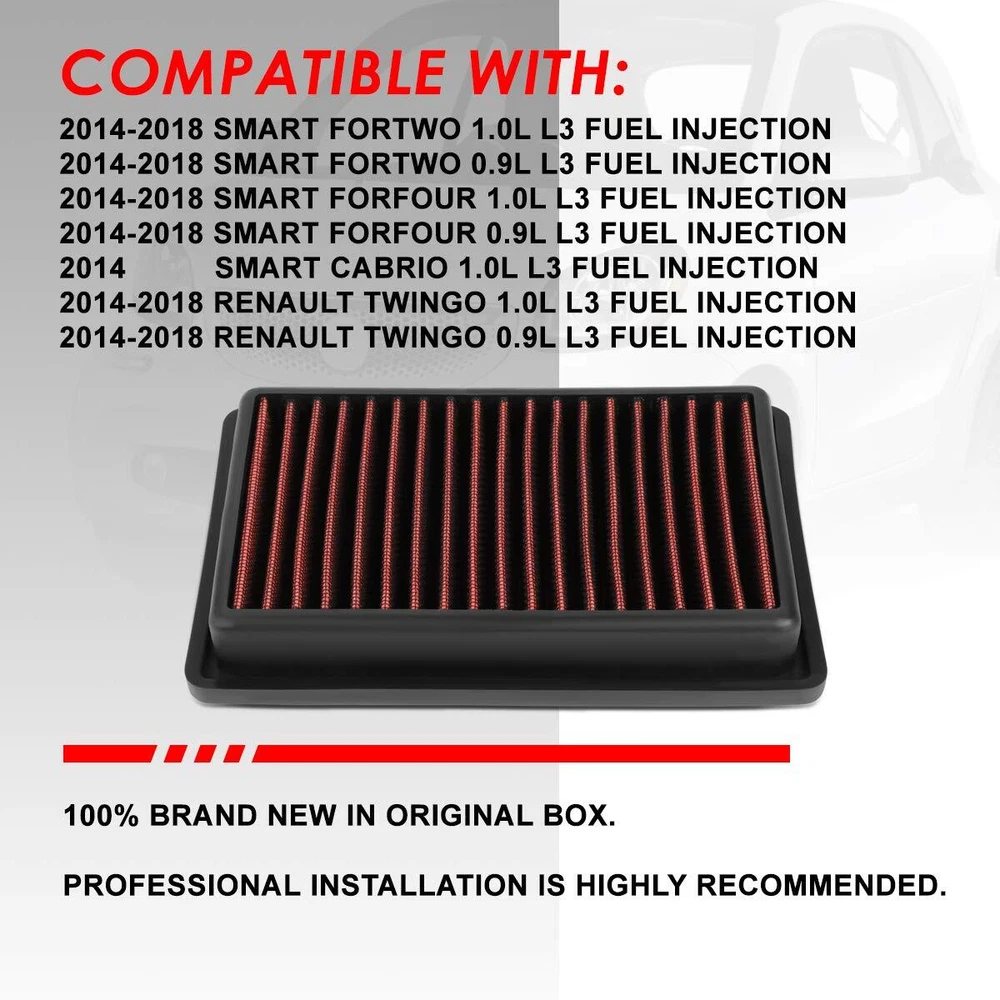 Our reusable Drop in Filter is designed to be the last air filter you buy for the car. It can be cleaned and reused and provides exceptional filtration for your engine. It fits in your OEM air box and replaces the factory filter. Performance is increased as the cotton gauze media filters but does not impede air flow. These filters do not require oil so it does not clog your maf sensor throwing a CEL. Package Included: 1 X Air Filter This product is with: 16-18 Smart Fortwo 0.9L Turbo Notes: OEM Part Number:A2810940000 2810940000 Parkslink Number:C22033 WA10517 ▶️ Designed to Boost Horsepower and Rate of Acceleration ▶️ Can be Cleaned and Used Again; High Air Flow with Exceptional Filtration ▶️ Lasts up to 50,000 Miles Before Ceaning is Required Depending on Driving Conditions ▶️ Works with Original Equipment Manufacturer Vehicle Electronics ▶️ Will NOT Void Vehicle ; Does NOT Require Filter to be Re-Oiled