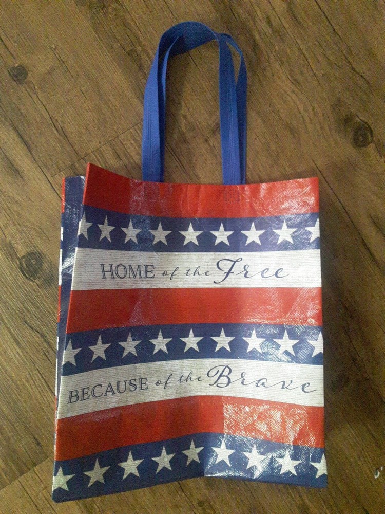 New Red White Blue Home Of Brave Reusable Shopping Gift Bag Recycled Material. Condition is New. Shipped with USPS Ground Advantage.