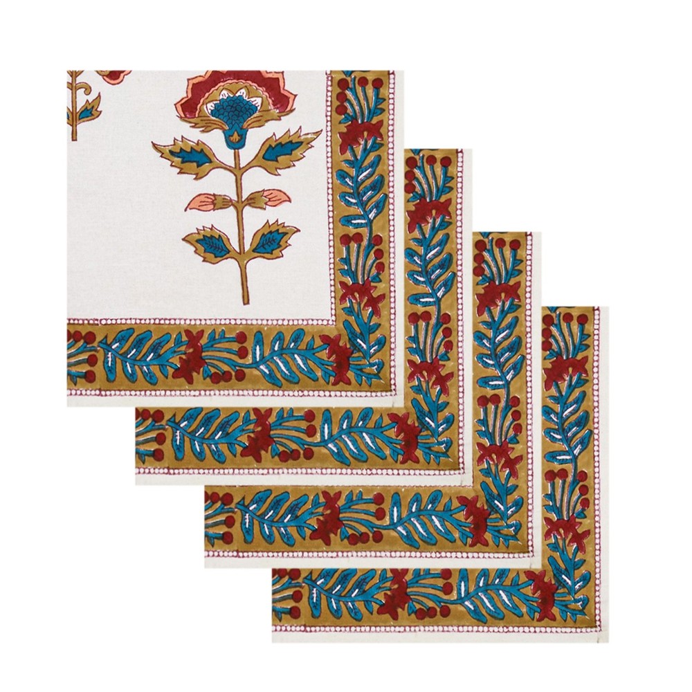 $ 17.01Vibrant Indian Hand Block Printed Cotton Napkins in Yellow & Red