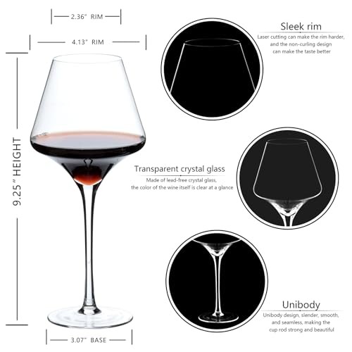 Return Policy Fast Delivery Trusted seller Red Wine Glasses Set of 4 – 17.5oz Premium Crystal Wine Glass With Long Stem – Hand Blown Burgundy Wine Glasses – Unique Gift for Wedding, Anniversary, Christmas Product Description High-Quality Wine Glass --- Our high-quality wine glass is the secret to a 30% enhanced taste and a demonstration of the restaurant’s quality. Its light and thin wall offers an elegant appearance for the wine. 100% Leadless Crystal --- glass is 100% leadless with endurable and transparent crystal glass which reflects the true quality of wine. The Perfect Gift --- Our Wine glass will not disappoint you, whether it is for your own use or as a gift for others. It will impress everyone, whether it is your wife, husband, father, mother, siblings, or a wine lover, and it will serve as a unique gift to celebrate life’s important moments, whether it is anniversary, a wedding,Halloween,Christmas, an evening party, or a family party. Handcrafted --- Each wine glass is hand-blown by an experienced master craftsman, by whom the edge is delicately polished and cut for a thin and smooth appearance to provide a better sense of touch for your lips and enhance the quality and flavor of the wine. Premium Large Capacity — This large bowl of long stemmed tulip-shaped personalized wine glass can quickly and fully oxidize the wine in the wine glass,and the shrink design of the mouth of the glass allows you to keep the aroma of the wine in your wine tasting. Shipping Returns Payment Shipping Shipping is FREE to all addresses other than APO/PO boxes in the lower 48 states. All our stock ships from US-based warehouses. Shipped via USPS or UPS (depending on location and package weight) Unless stated otherwise, all orders will ship within 24-72 hours of your payment being processed. Check our feedback to see the great reviews of FAST shipping we offer. Returns Seller does not accept returns Payment We currently accept payment via eBay managed payments only. Once payment is cleared, we will dispatch your shipment within 1-3 business days. Please refer to the "Shipping" tab for more information regarding shipping speed to your destination.