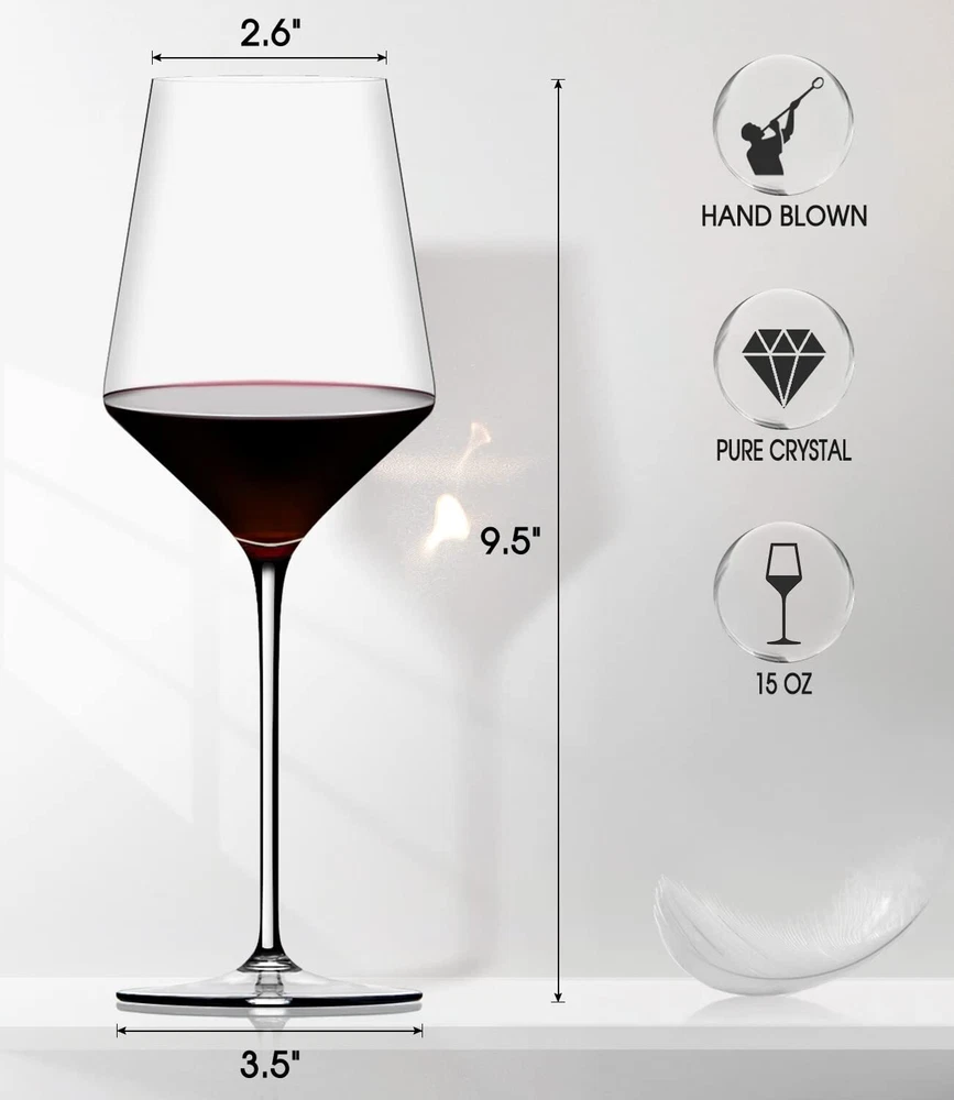 Red Wine Glasses Set of 4- Premium Crystal Wine Glasses Hand Blown-15 oz,Thin...
