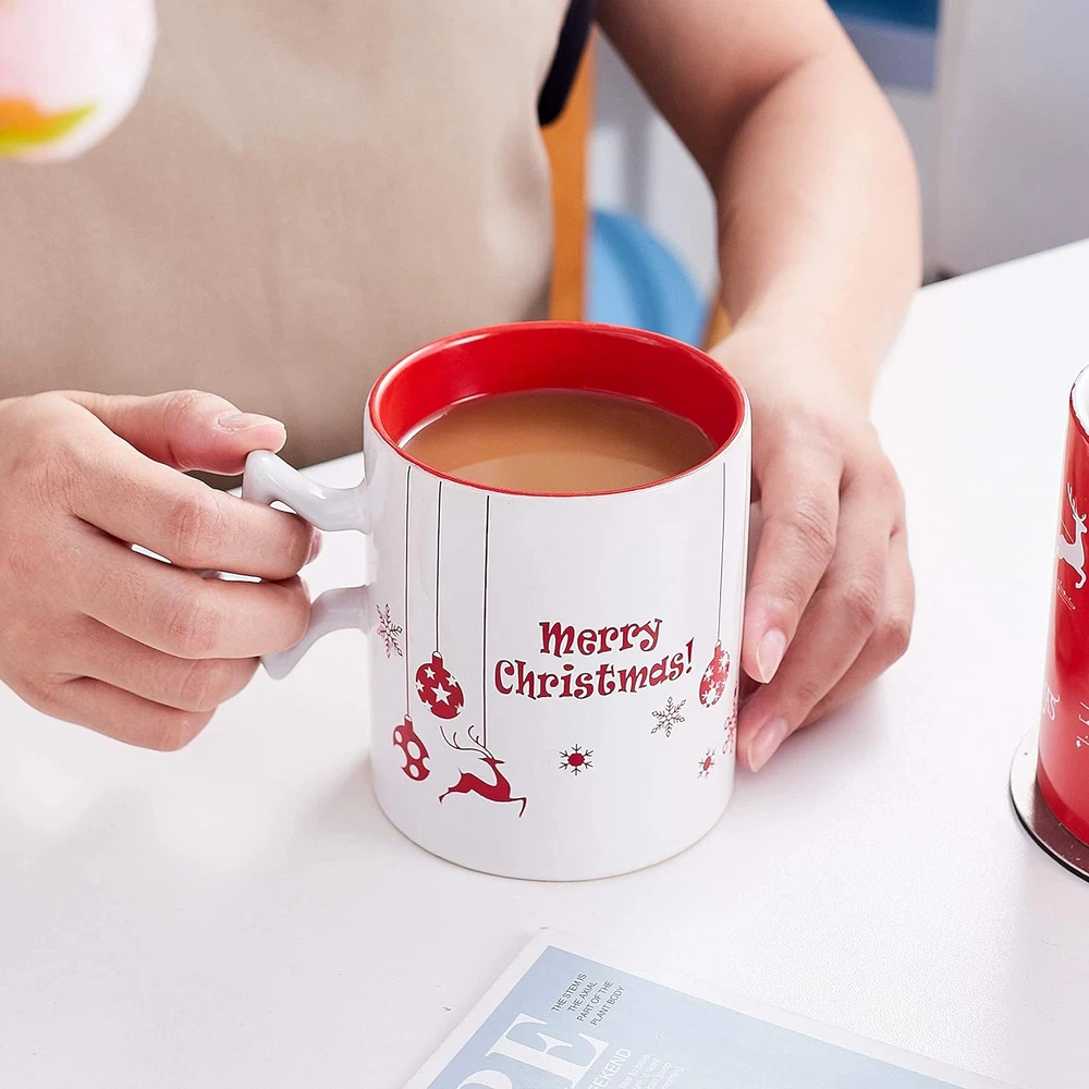 Perfect for All Drinks: These ceramic coffee mugs are ideal for coffee, tea, hot cocoa, and all other drinks, whether hot or cold. These mugs can be used for festive DIY baskets or coffee gift sets. Tea Cup: Start your morning with a festive-twist using our women's special tea cups. These festive caffeinated beverage cups come in an attractively designed seasonal spirit gift box. The Ideal Present Set for All: This ceramic tea cup is a perfect gift for men and women during winter festivities or New Year celebrations, making it a thoughtful token for family and friends. Festive Spirit: These delightful mugs, adorned with delightfully illustrated seasonal scenes, enhance your party or dinner's ambiance Our 14 oz mug set adds a hearty festive atmosphere. Microwave and Dishwasher Safe: These high-quality ceramic mug set does not contain any harsh chemicals. It's perfectly safe to use in microwave, dishwasher, oven or fridge and, it is easy to clean. Product Description