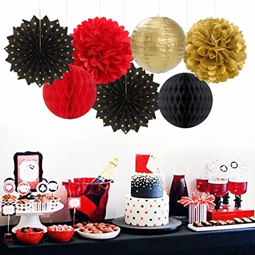 Red-Black Gold Party Decorations Streamers Lanterns - 14pcs Red Black Gold