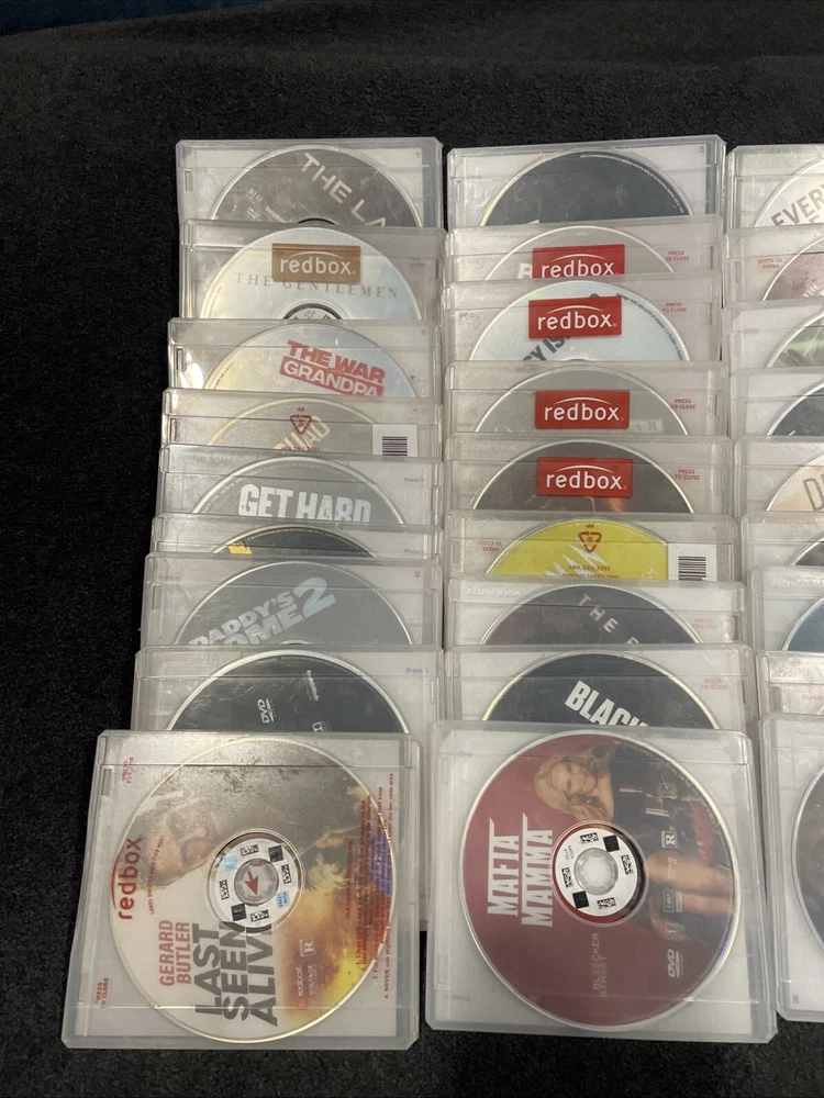 Please find below a list of the 36 DVD movie names: • 2067 • ARCHIVE • BAD MOMS • BLACK SITE • BLUMHOUSES'S FANTASY ISLAND • CANDYMAN • DADDY'S HOME 2 • DEVIL'S PEAK • DIRTY GRANDPA • EVERY BREATH YOU TAKE • FATHER STU • GET HARD • GRAND ISLE • INTERSTELLAR • IP MAN 4 • IP MAN KUNG FU MASTER • KINGSMAN THE GOLDEN CIRCLE • LAST SEEN ALIVE • MAFIA MAMMA • MAGGIE MOORE(S) • NOBODY • RANGO • REBORN • SUICIDE SQUAD • THE ACCURSED • THE BATMAN • THE CURSE OF LA LLORONA • THE GENTLEMEN • THE KING OF STATE ISLAND • THE LAIR • THE LAST DUEL • THE RENTAL • THE SEVENTH DAY • THE WAR GRANDPA • THE WOLF OF WALLSTREET • VENDETTA
