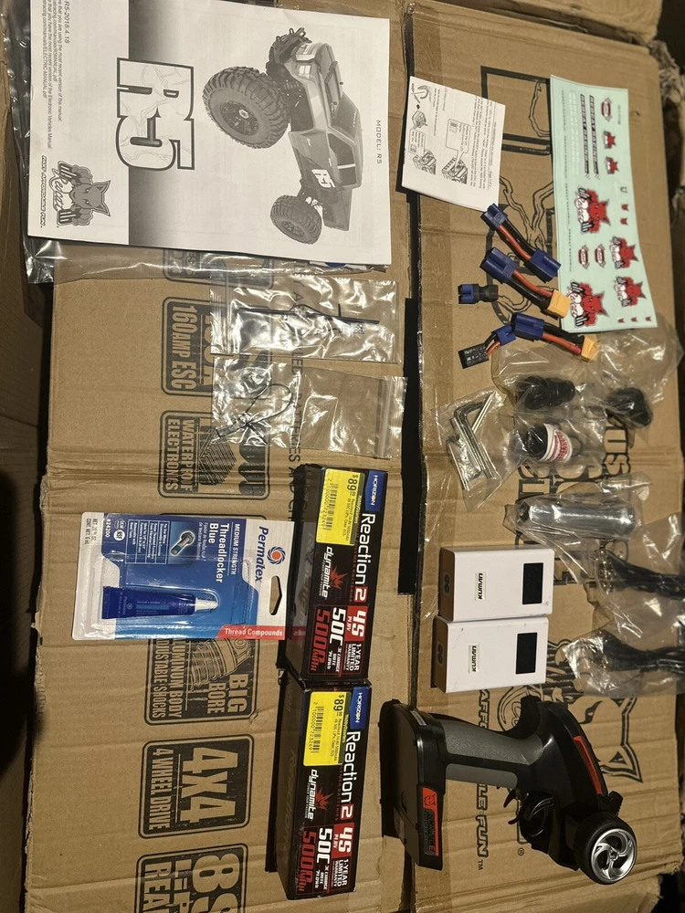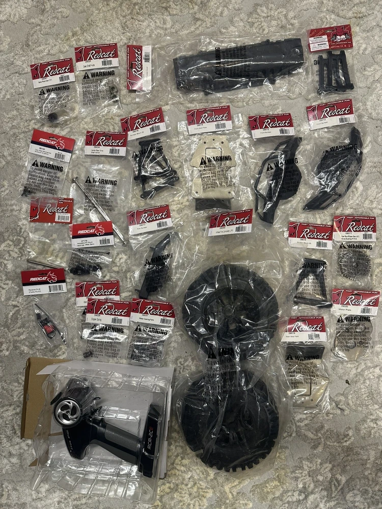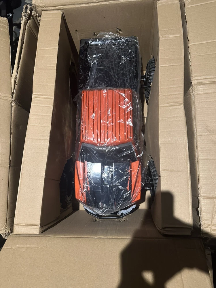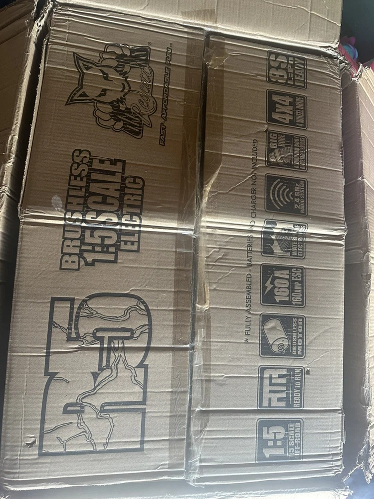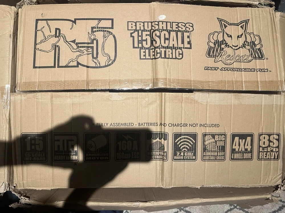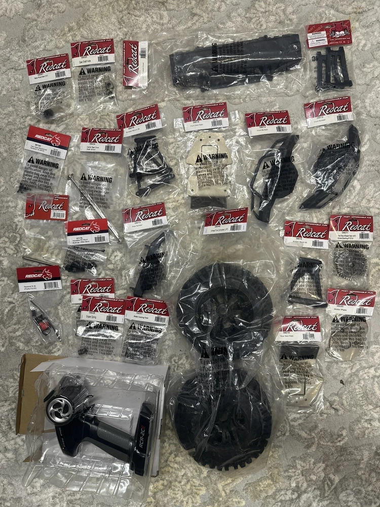 Are you ready for 8S power? Then the Redcat Racing Rampage R5 1/5th Scale brushless monster truck is just what you need. The R5 comes fully equipped with an 8S Ready Power System. The R5 is a big truck that looks and drives amazing! The high ground clearance chassis design gives the R5 more clearance when driving over obstacles like logs, rocks, and other large scale RC vehicles. Handling characteristics of the R5 are amazing, and its sheer size, coupled with the high clearance chassis, this 1/5 scale monster can be taken almost anywhere. The R5 is ready to run right out of the box, just add your own 6S-8S LiPo power and charger. The R5 includes Redcat’s large scale high clearance chassis, waterproof electronics, and powerful brushless ESC and motor, and 2.4GHz radio system. The R5 has oil filled threaded shocks and rides on a set of aggressive off road tires. The powerful brushless motor blasts this high clearance monster truck through rough terrain with ease. The R5 is a big, bad, powerful monster truck. Caution should be taken when operating this vehicle. The R5 was designed to be a powerful performer that will leave a lasting impression on anyone who gets to see it in action. The massive amounts of airborne dirt particles and sheer large scale excitement will put a smile on most faces, and you are lucky enough to be the one controlling the R5, you will not want to put the controller down. The R5 is pure excitement! See demo video on youtube via link below. https://youtu.be/3HtAeGNLbUE This is a brand new unused redcat rampage R5. The cardboard box it ships in is weathered from storage and moving it many times, but see pictures; the car is unharmed. I am including the two high end batteries the reaction 2 5000 mA along with two chargers and the remote. I will test and record video before I ship it out to make sure this goes smoothly because shipping is pricey and I dont want any reason for a return. I hope you can understand. I bought many spare parts a little over $500.00 worth. From Wheels to axle shafts bearings and many more. I’ll attach pictures of that asap.