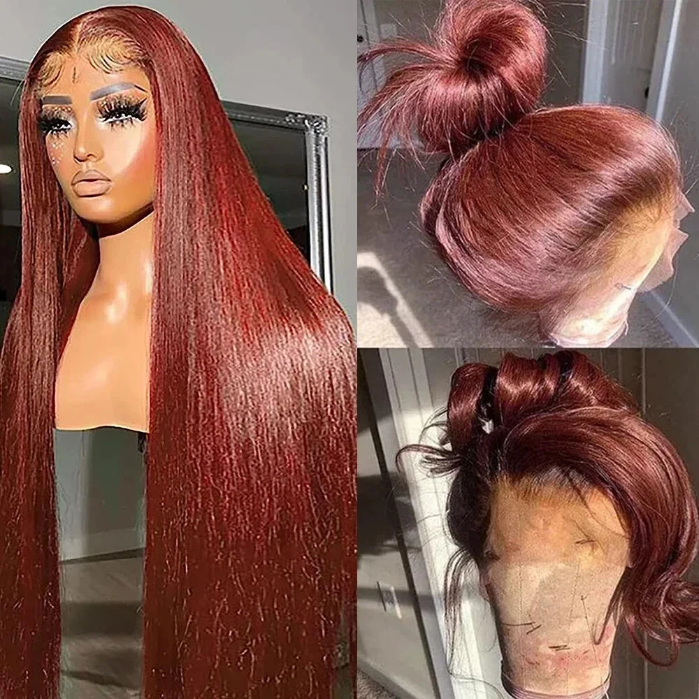 Straight Ginger Orange HD Lace Frontal Human Hair Wig Pre Plucked